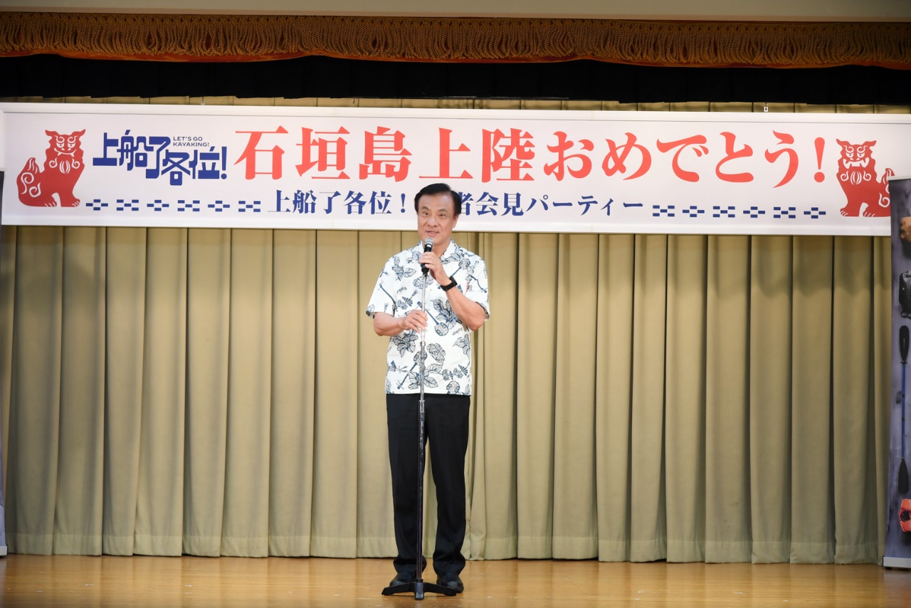 2024/06/13本處王處長瑞豐陪同台灣日本關係協會蘇會長嘉全赴石垣市出席三立電視台等舉辦的「上船了各位!」記者會,沖繩縣副知事池田竹州、「八重山觀光推進協會」專務理事我那覇宗廣、石垣市長夫人中山祥子、竹富町町長前泊正人等人都前往觀禮或致詞。 蘇會長稱讚7位藝人體力過人,僅費時55小時(原定60小時)即以獨木舟接力完成此次艱鉅任務。接著表示,上(5)月訪問沖繩縣曾親自拜會玉城丹尼知事及石垣市中山義隆市長等,十分感謝沖繩縣、石垣市及竹富町等鼎力協助。台灣日本關係協會係對日工作最重要且唯一窗口,未來將藉由類似活動致力推動台日關係。 (二)沖繩縣副知事池田竹州代讀玉城知事致詞稿並先就本(2024)年4月花蓮地震不幸罹難者及其家屬,表達由衷慰問之意,也對挑戰花蓮至石垣島長達260公里的各位藝人,表達誠摯敬意。去(2023)年台灣觀光客訪問沖繩縣達52萬人,居外國觀光客之42%,台灣為沖繩縣十分重要夥伴,今後將推動雙方在各領域之合作,並盼藉這次活動,雙方交流能更加興盛。 這次在三立電視台等精心企劃下,7位藝人能不畏艱難,完成這個歷史性創舉,真的令人感動及敬佩。