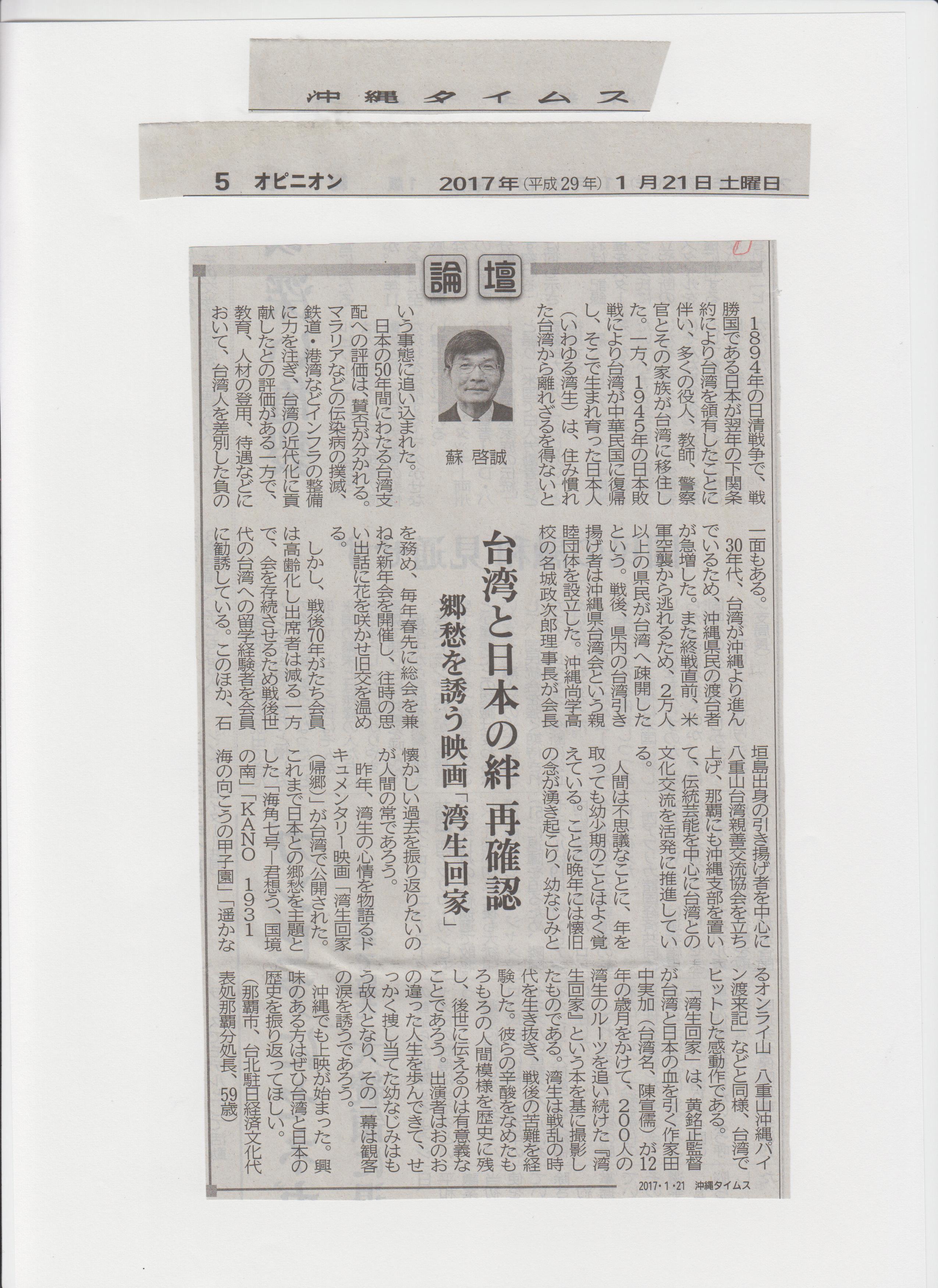 沖縄でも上映が始まった。興味のある方はぜひ台湾と日本の歴史を振り返ってほしい。