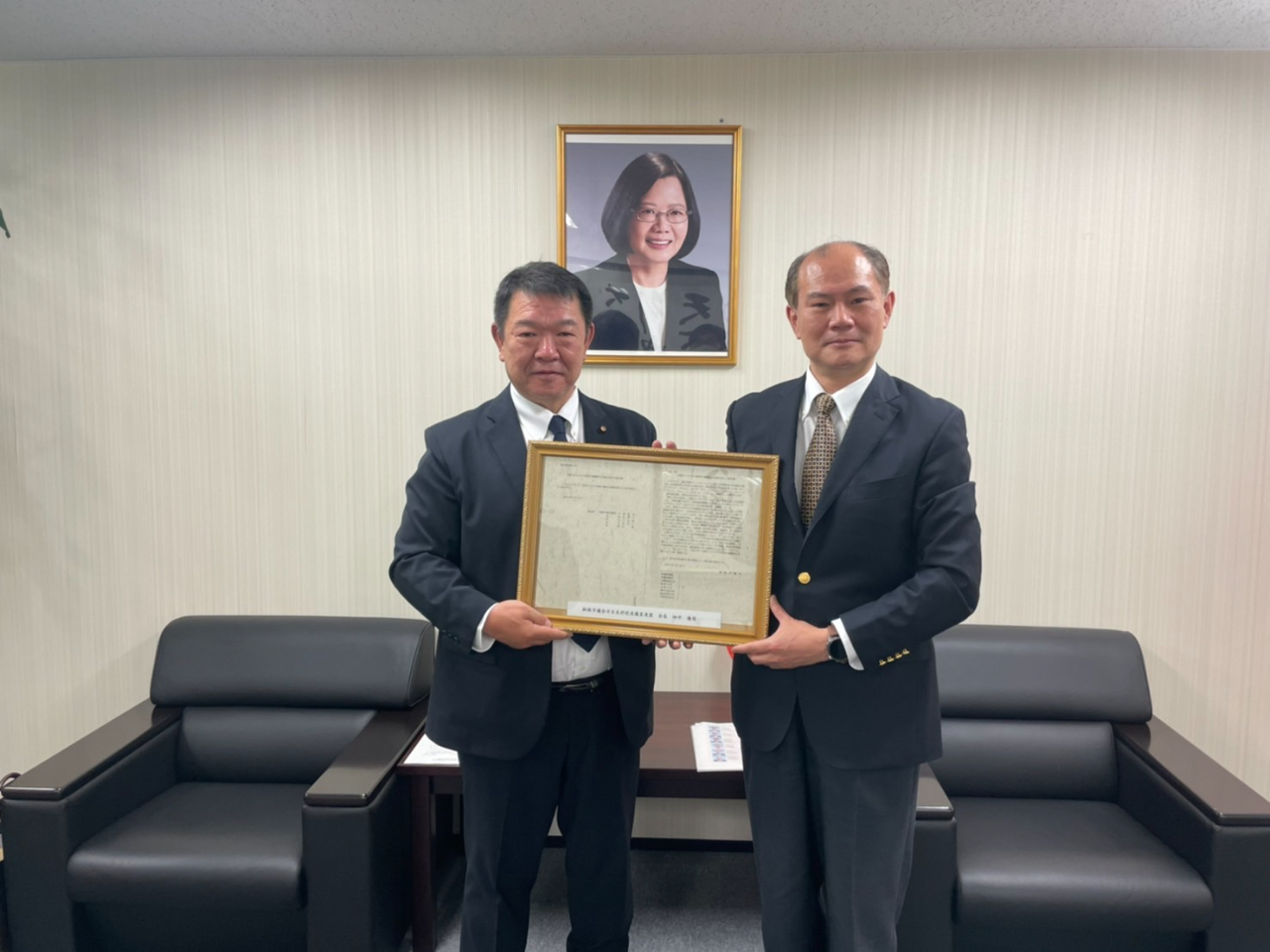 2022年5月11日釧路市議會日台友好促進議員連盟畑中優周會長拜會粘處長並遞交釧路市議會支持台灣加入CPTPP之決議書
