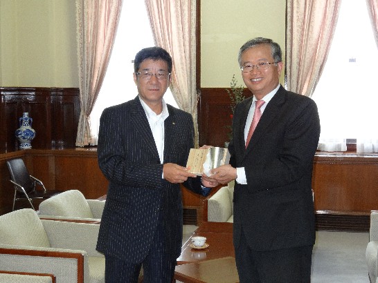 一、駐大阪辦事處蔡處長明耀於102年9月25日下午造訪大阪府,受到松井一郎知事及相關官員熱誠歡迎。