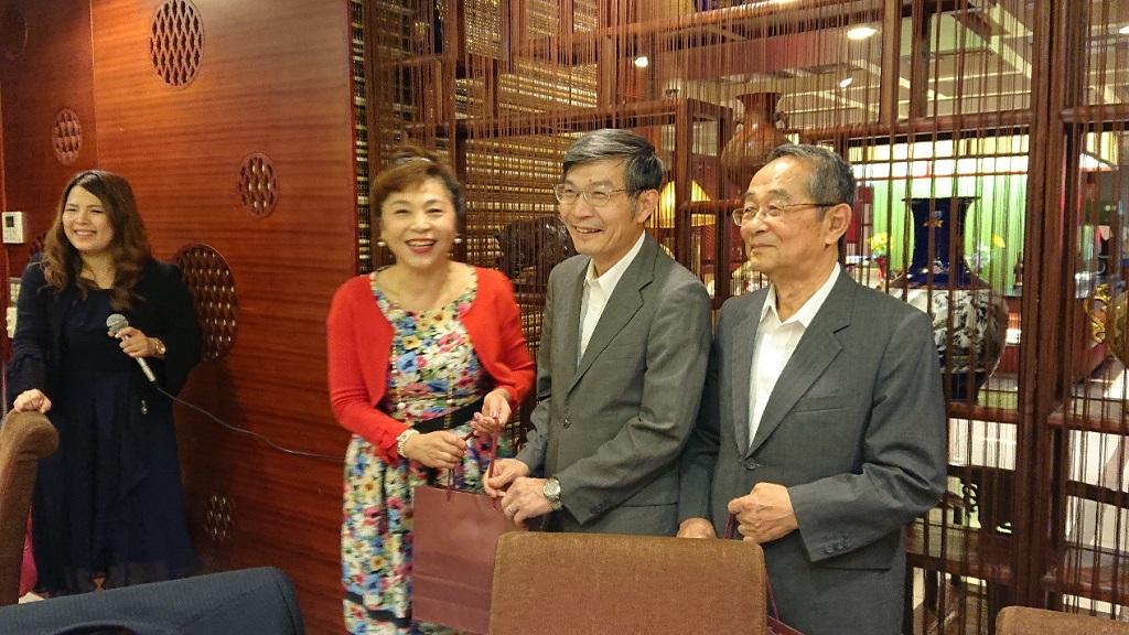 謝名譽會長致歡迎詞,並引領所有與會人員共同舉杯,場面熱絡,晚宴歷2小時結束。