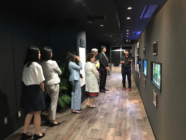 駐大阪辦事處李世丙處長(右二)及神戶華僑總會陸超會長(右三)與關西臺商協會俞秀霞會長(右四)等人參觀神戶學園水族館一景