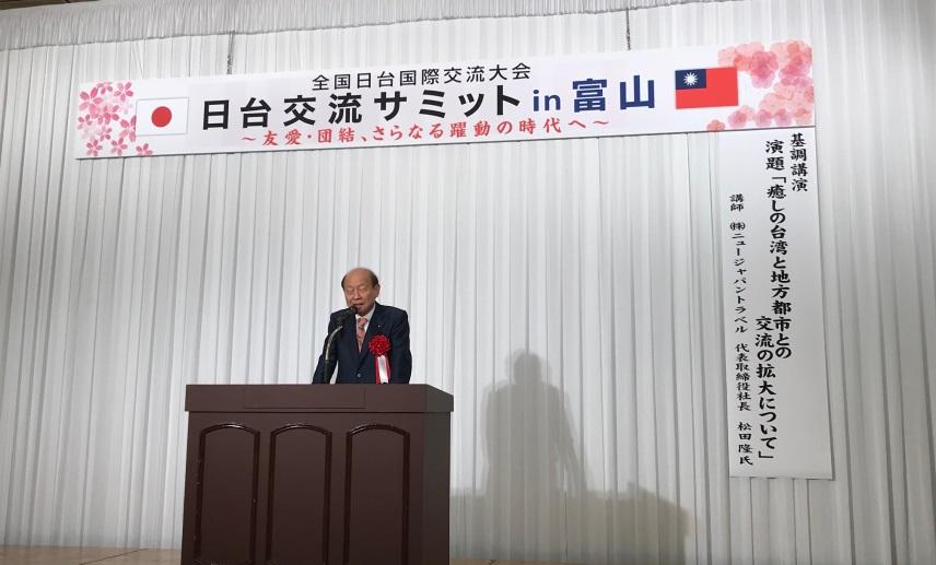 駐大阪辦事處李世丙處長陪同駐日謝長廷大使於本(108)年9月28日應邀出席第五屆「台日交流高峰會」,此為富山縣首度主辦交流高峰會,會後通過支持台灣加入跨太平洋夥伴全面進步協定(CPTPP)、國際民航組織(ICAO)及世界衛生組織(WHO)等國際組織之「富山宣言」。