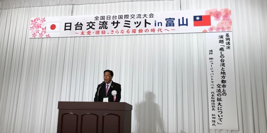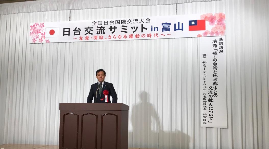 眾議院田畑裕明眾議員、宮腰光寬眾議員、富山縣石井隆一知事、中川忠昭議長、富山市森雅志市長等出席。日方計有36個地方議會議員出席,我方則有高雄市議會康裕成議員等、台南市議會李偉智議員等及台北市議會江志銘議員、陳炳甫議員與會,臺日雙方參與者約320名。明年第六屆「台日交流高峰會」將在石川縣加賀市舉行。