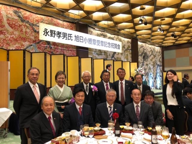 駐大阪辦事處李世丙處長於本(10)月22日陪同駐日本代表處蔡明耀政務公使應邀出席「大阪府議會日華親善議員聯盟」永野孝男前會長「旭日小綬章」受勳紀念祝賀會,計有馬場伸幸、井上英孝眾議員,東徹、淺田均、清水貴之參議員,大阪府議會岩木均等30餘名議員,大阪中華總會洪勝信會長、郭重信副會長暨幹部、清河雅孝僑務委員、欣華會李忠儒會長、關西崇正會城年德會長、近畿大學中華民國校友會林裕恒會長、日本台南市後援會陳天隆會長、大阪中華學校連茂雄理事長、台日文化藝術交流會蔡欣珊秘書長等我僑領亦與會,會場政、商、學、僑界人士約360名參加,場面盛大。
