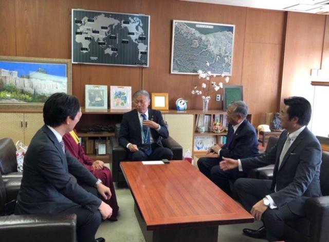 蔡政務公使(右二)偕同李處長(右一)拜會水野市長(中)