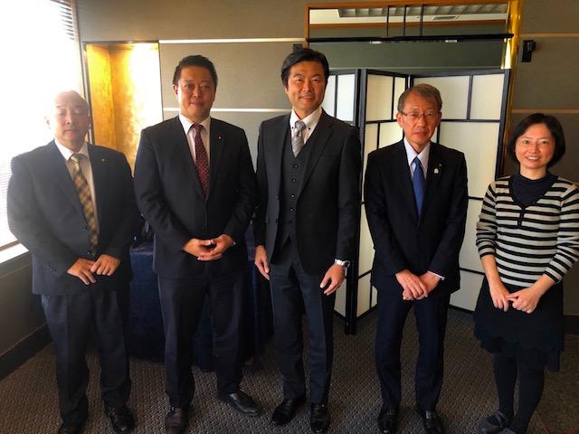 李處長(中)與木畑議員(左二)、宮前局長(右二)等人合影