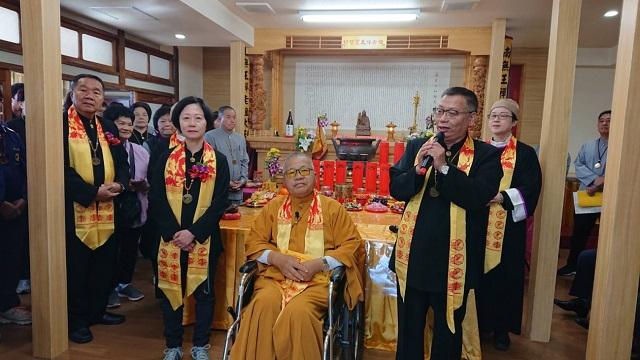 混元禪師(中)、元啟法師(右)、元佳講師(左)及出席貴賓共同祈願