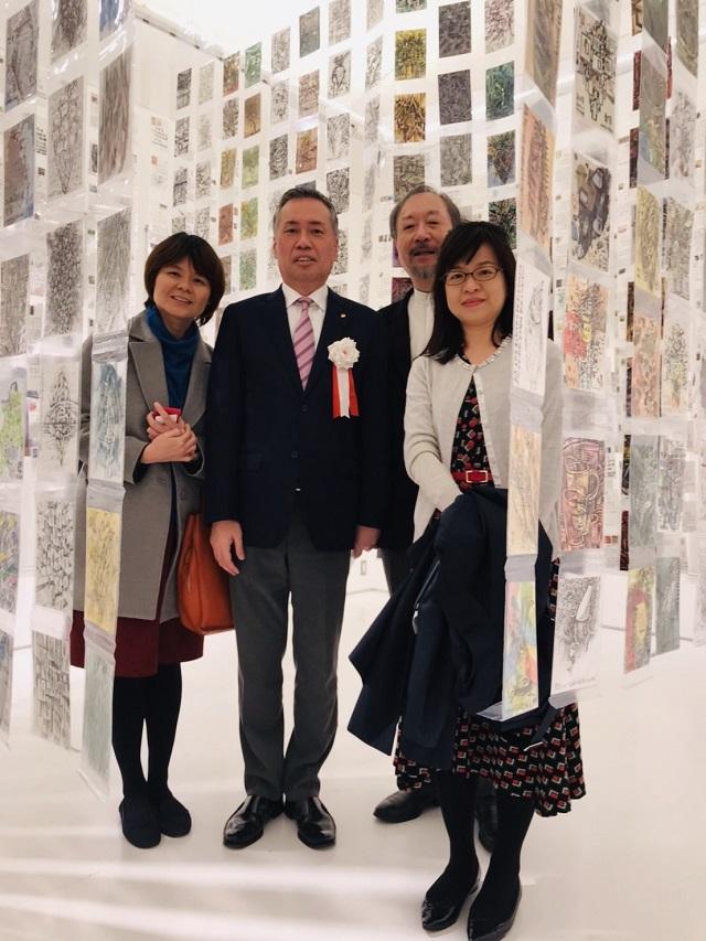 林磐聳老師為臺灣「企業識別」(CI)設計的重要推手,同時為國立故宮博物院及交通部觀光局等公家機關設計Logo,其作品在海內外獲獎無數。 本次應岡山縣津山市谷口圭三市長的邀請,特別前來舉辦「故鄉x故事」個展,展出以家鄉屏東及造訪世界各地編織出的饒富故事性的素描、卷軸、海報,以及手繪明信片。 2月15日(週六)開幕式當天,津山市市長、教育長,以及岡山縣議會議員等人皆前來出席並剪綵。駐大阪辦事處林育柔秘書偕同觀光協會大阪事務所王沁柔專員受邀前往與會。 開幕式後,接著安排林磐聳老師進行2個小時的演講。本活動展期至2月24日止,歡迎有興趣民眾前往參觀(參考網站:https://www.port-tsuyama.com/blank-3)。