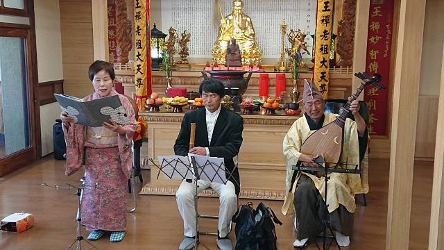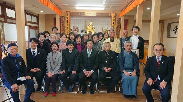 台灣唯心聖教大阪道場黃詩評主任、元啟法師於2月24日(假日)舉辦祈福會暨「河內長野市鄉土音樂研究會」等活動,李世丙處長、河內長野市島田智明市長、浦山宣之副議長、大阪日台交流協會野口一會長、李鴻儒水墨大師、人間國寶竹本旭將總師範等各界人士出席,促進台日文化交流。
