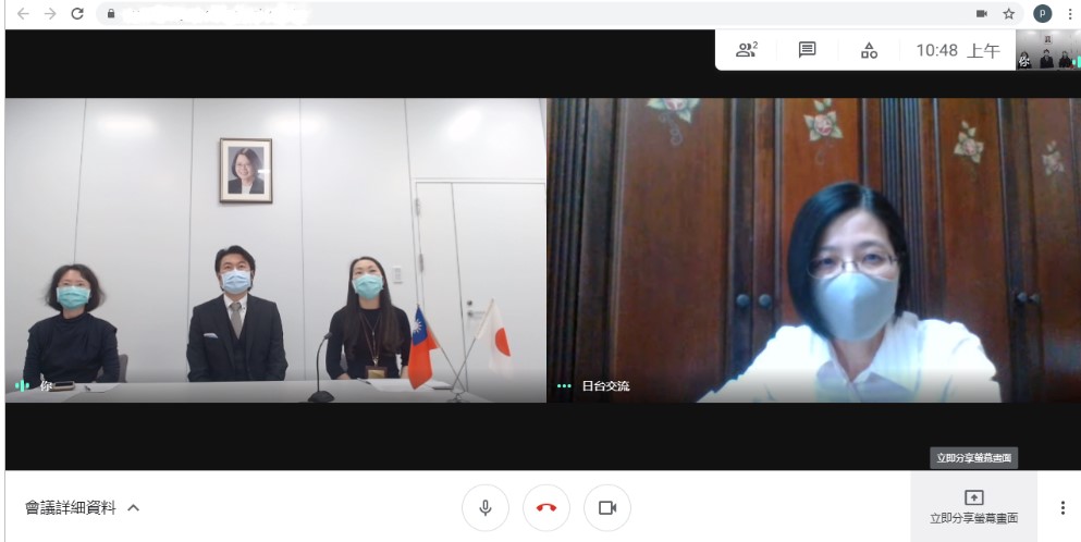 駐大阪辦事處李世丙處長偕同楊慧萍僑務秘書及李碧娟秘書於本(110)年5月24日與「日臺文化藝術交流會」林慧諭名譽會長視訊座談,就促進臺日文化藝術、城市交流等交換意見。
