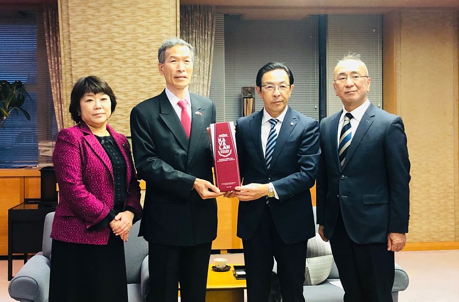 駐大阪辦事處向明德處長於本(110)年11月22日拜會京都府知事西脇隆俊,京都府議會「日臺親善議員懇話會」會長秋田公司、幹事長宮下友紀子亦在座,雙方就城市、防疫及經貿交流等廣泛交換意見。 西脇知事曾任日本國土交通省審議官及復興廳事務次官等要職,並於107年4月起擔任京都府知事。