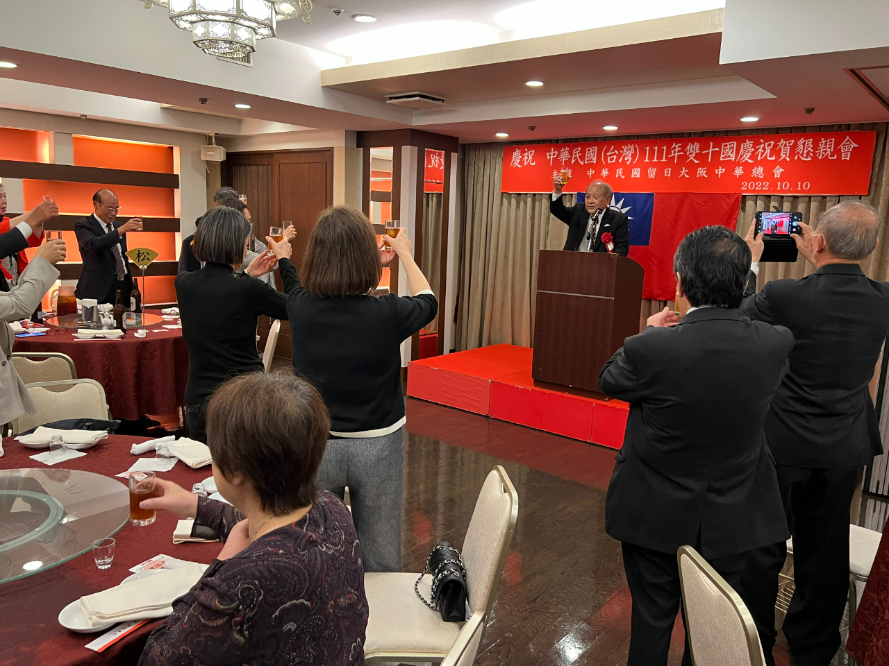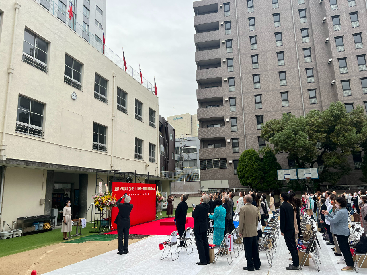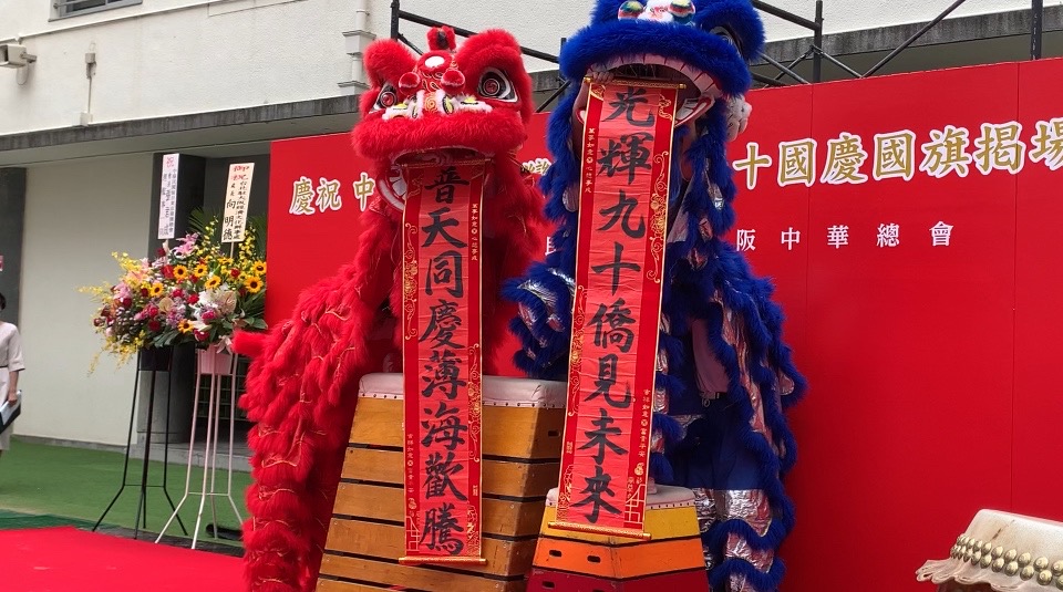 典禮中由大阪中華學校連茂雄理事長代表來賓致詞,另安排大阪中華學校師生舞獅、國樂、民俗舞蹈及國術等表演,舞獅於結束時吐出「普天同慶薄海歡騰 光輝九十僑見未來」對聯,獲全場掌聲。升旗典禮最後由大阪中華總會副會長高山修治致閉幕詞,典禮結束後,當晚另舉辦祝賀餐會,會中由該總會洪里勝信名譽會長引領乾杯、友田律人副會長致閉幕詞,氣氛溫馨融洽,為活動劃下完美句點。