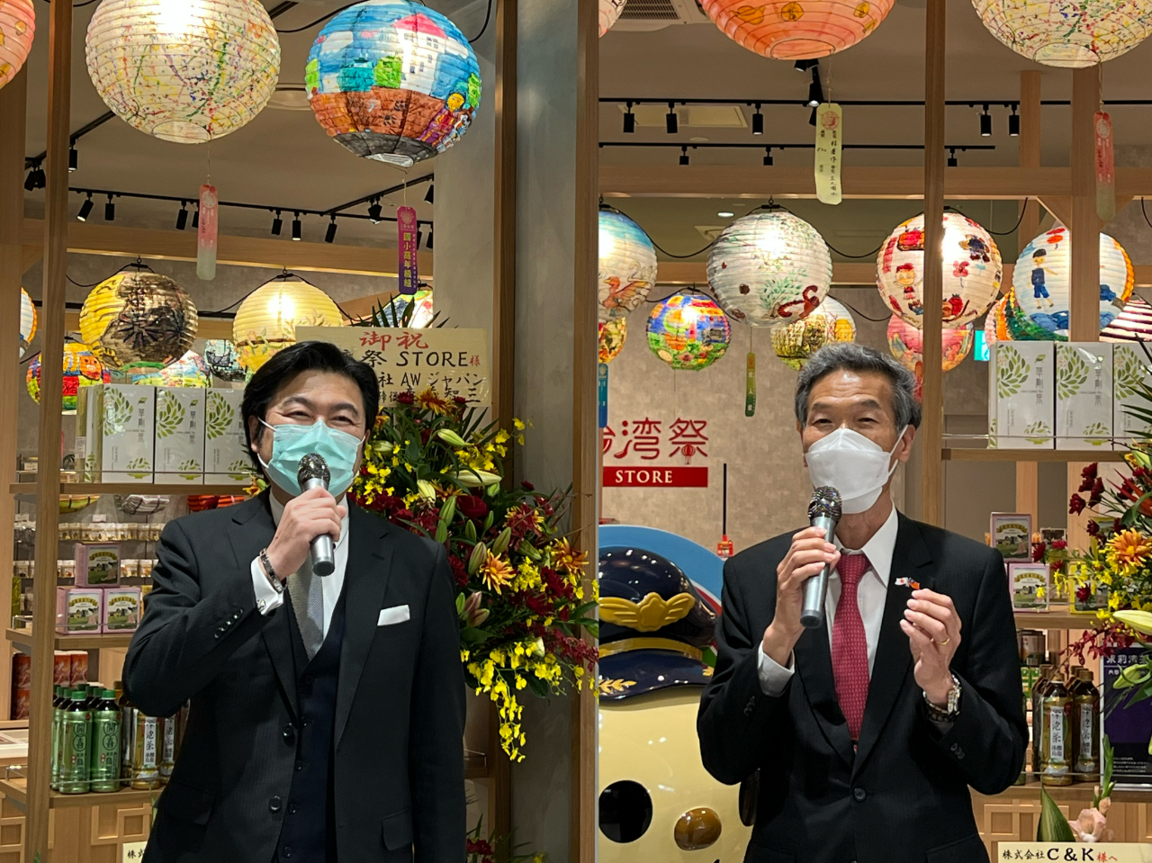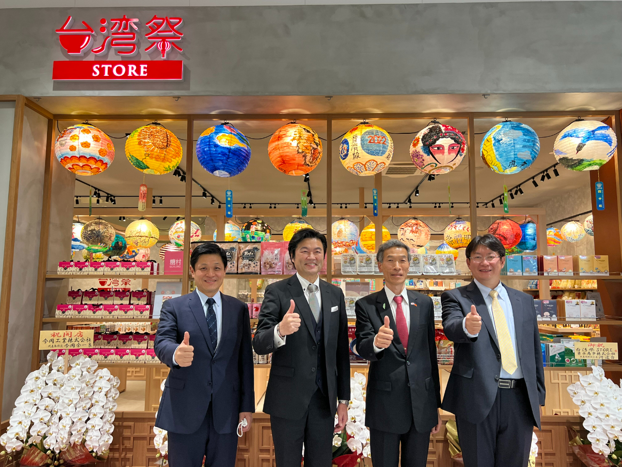 駐日代表處李世丙副代表及駐大阪辦事處向明德處長偕員,於本(111)年11月4日前往大阪府堺市出席「台灣祭商店」開幕剪綵,該商店係由亞洲台灣商會聯合總會陳五福總會長及華僑第二代片岡健一為推廣臺灣而共同設立。店內以販賣由臺商進口之臺灣商品為主,並掛滿臺灣傳統燈籠,在大型賣場內駐店有助推廣臺灣。