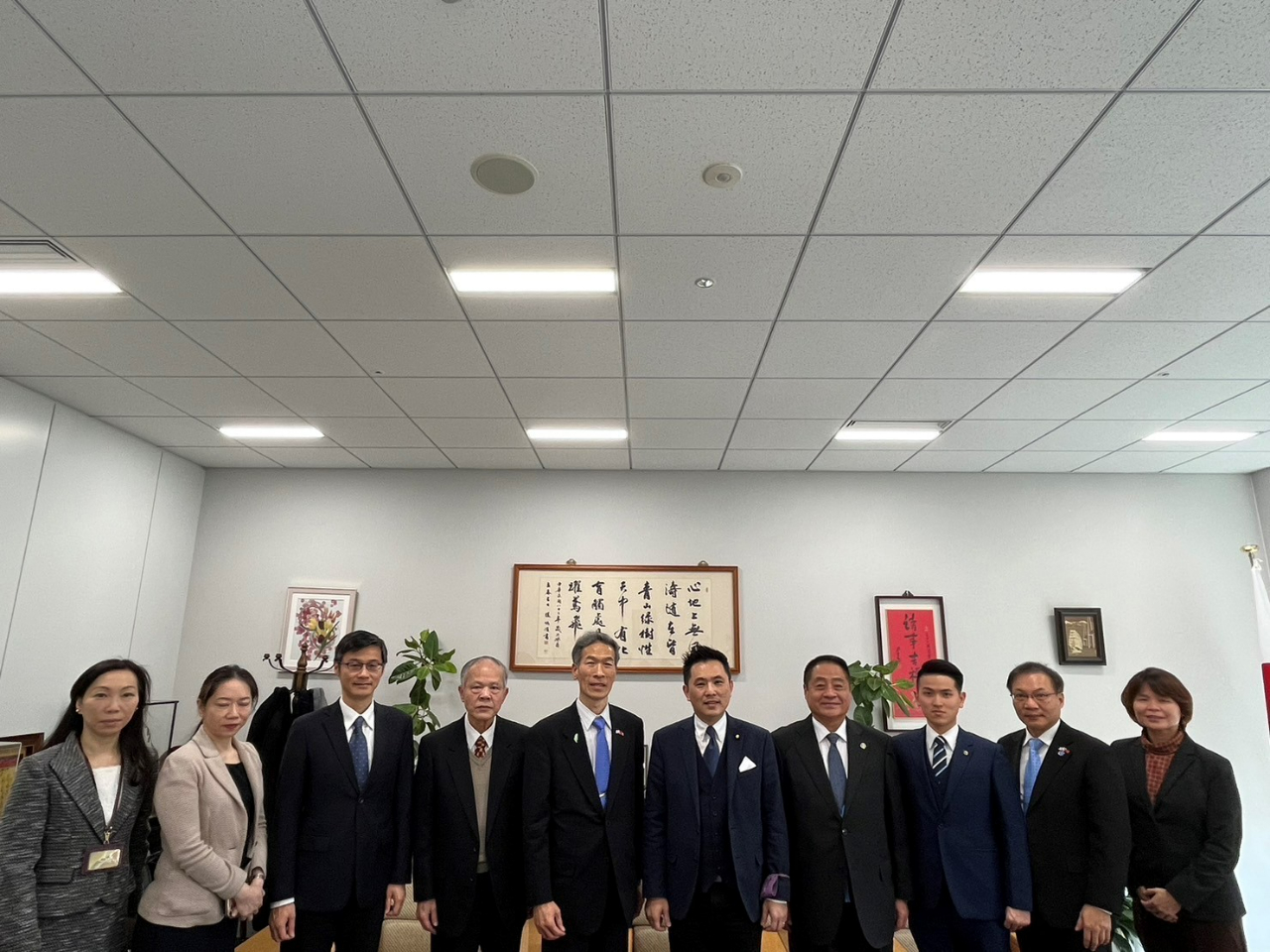 立法院陳以信委員偕「日本欣華會」李忠儒會長、「得福株式會社」陳民憲董事長及臺灣新聞張文瑜記者於本(112)年2月15日視訪本處,由向明德處長接待,並說明本處轄內各項業務現況。陳委員指出,著眼長久加強青年世代國會議員交流,以及深化結合僑胞及智庫工作,對駐處業務推動甚有助益。雙方就推動關西地區與臺灣之地方、僑務、經貿及文教等交流廣泛交換意見,張永賢副處長及本處同仁均在座陪見。