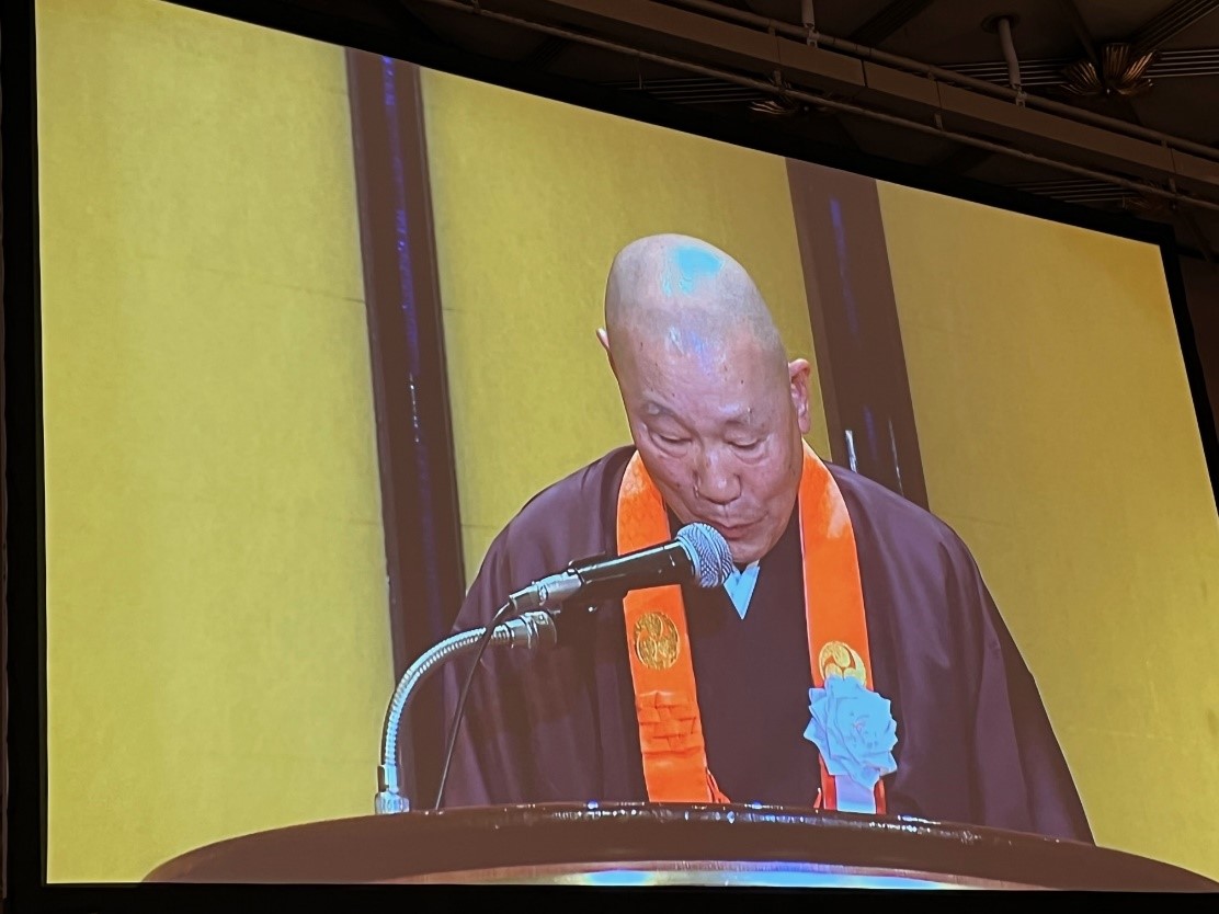 本活動係為慶祝長谷部真道大僧正於上(111)年11月15日就任第四百十五世座主兼高野山真言宗管長,於本日舉行「晉山式」,祝賀會由高野山真言宗今川泰伸宗務總長致歡迎詞,並由下副知事及浜上町長等代表來賓致詞,另邀請日本內閣府防災擔當大臣谷公一眾議員線上祝賀。