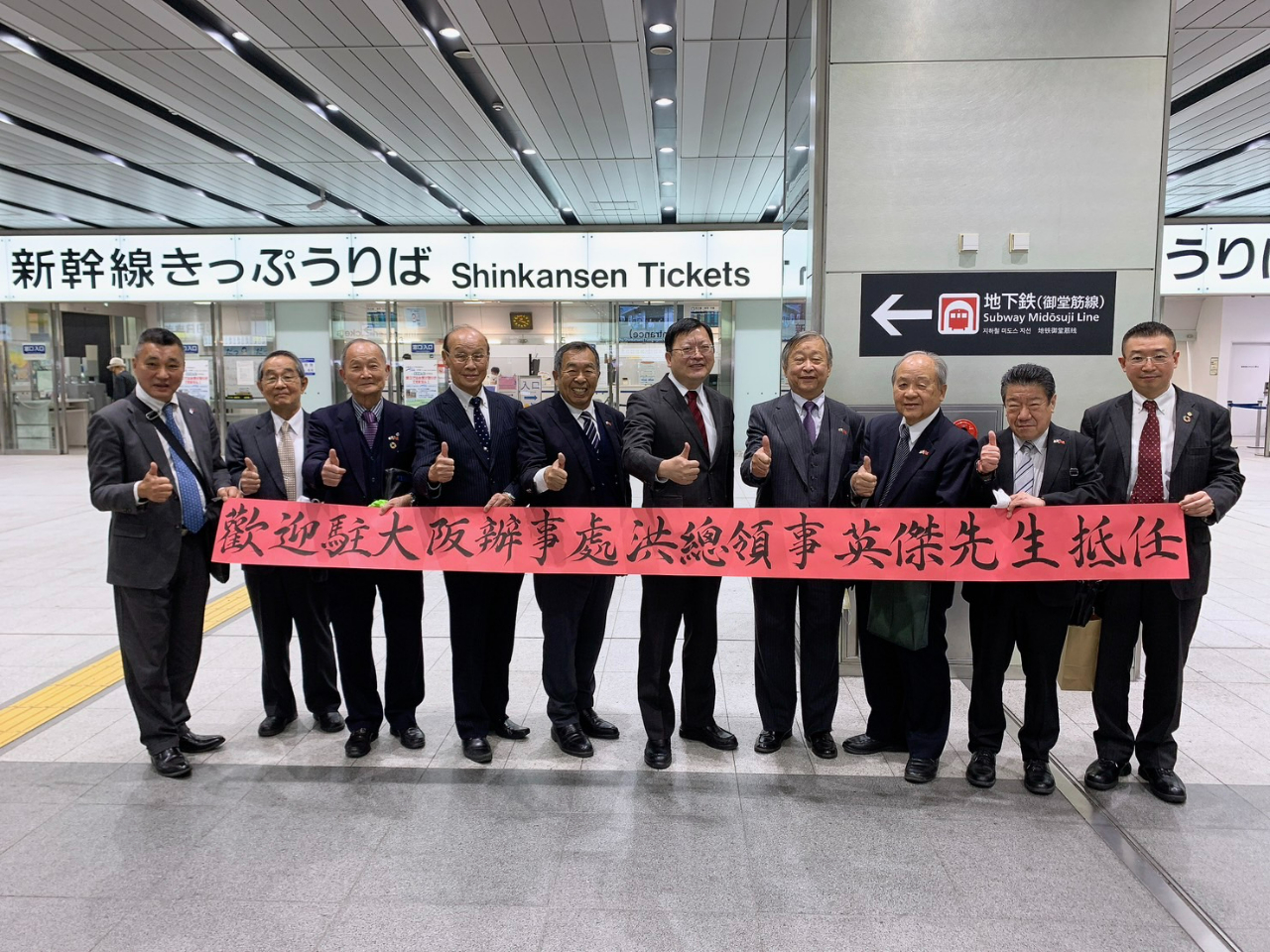 駐大阪辦事處洪英傑處長於本(112)年4月24日下午抵任,包括大阪中華總會郭重信會長及幹部一行、大阪中華學校連茂雄理事長以及大阪台灣同鄉會張種德名譽會長等人至新大阪車站迎接,洪處長對於僑領特意前來表達感謝之意。