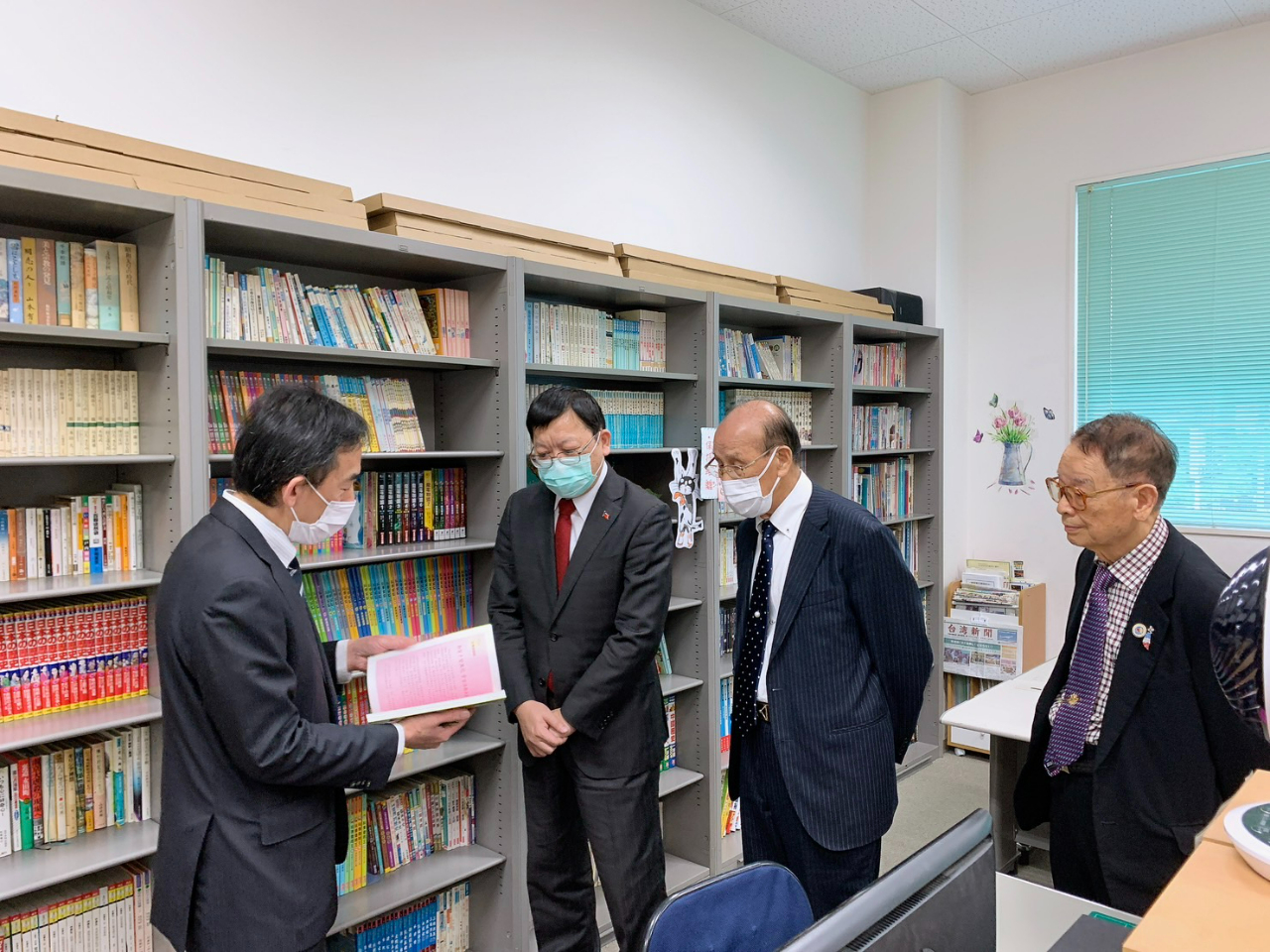 接續前往參訪大阪中華學校,由連茂雄理事長及蔣燁校長接待,首先前往教師辦公室,洪處長感謝老師對協助推廣華文教育不遺餘力,並逐一參觀教室、圖書館及體育館等校舍,雙方並就學校現況及遷校規劃等議題交換意見。