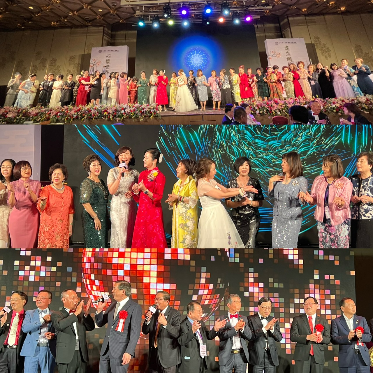 外交部晚宴由周公使主持,致詞肯定世華姊妹在外交及僑界的影響力,席間由各分會姐妹帶來精彩表演,大阪市議會日台友好議員連盟辻淳子會長也上臺獻唱,晚宴精彩的表演節目,讓氣氛嗨到最高點。