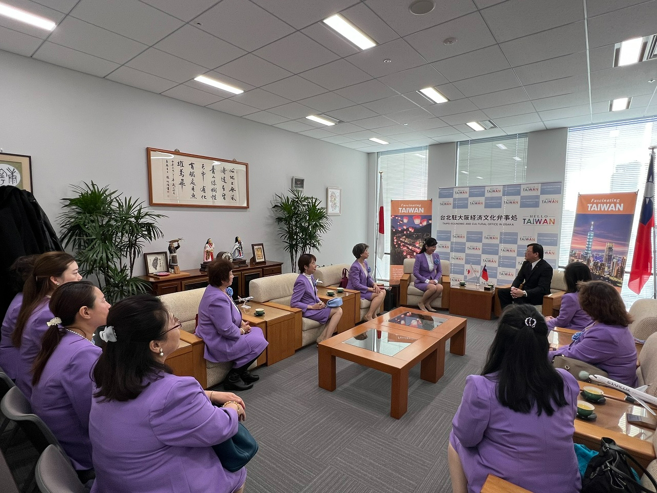 世界華人工商婦女企管協會日本關西分會於本(112)年11月22日由新任第四屆會長林伊曼率執行團隊在洪麗華名譽會長、劉雯玲輔導會長陪同下來處拜會,由洪英傑處長接見。洪處長感謝世華日本關西分會舉辦多項臺日交流及公益活動,並對協輔舉辦世華年會表達肯定,林會長報告會務活動規劃,雙方並就未來如何進一步促進台日交流,發揮世華在地影響力等議題交換意見。
