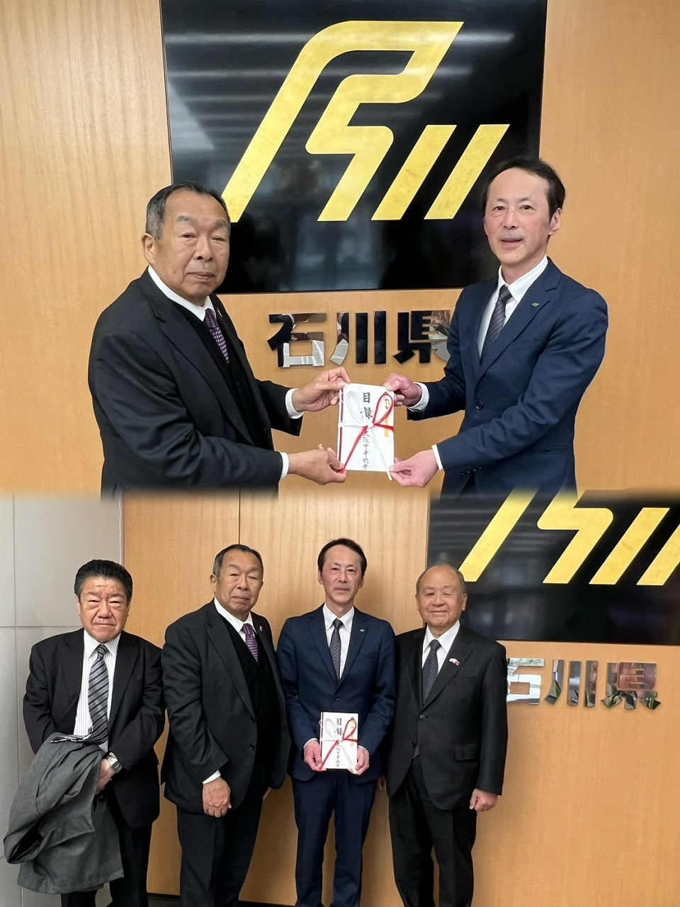 本(113)年3月28日駐大阪辦事處洪英傑處長前往石川縣大阪事務所,見證「中華民國留日大阪中華總會」郭重信會長偕洪里勝信名譽會長、友田律人副會長代表該總會捐款300萬日圓,以及2月10日主辦「大阪春節祭」現場所收捐款5萬4,620日圓(合計305萬4,620日圓),藉此賑濟日本石川縣能登半島震災以表達旅日華僑關懷之意。善款由石川縣大阪事務所山下幸則所長代表受贈,並表達感謝之意。