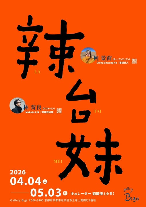 《辣台妹|Kyoto》 展覽期間:2026年4月4日-5月3日(週一、週二休館) 展覽地點:Gallery Biga(京都市左京區)https://www.tokyoartbeat.com/venues/-/gallery-biga 開放時間:13:30-18:00