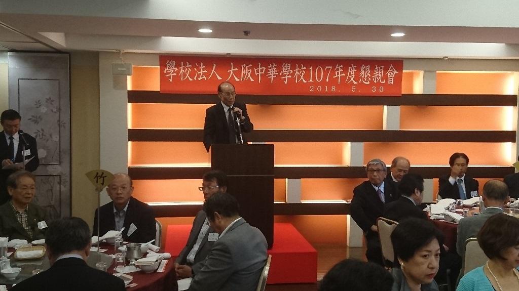 5月30日夜、陳訓養・駐大阪弁事処長夫妻が大阪中華学校107年上半期理事会及び議員総会後の懇親会に出席した。中華学校の理事、評議員、教員及び日本の親善団体メンバーを含む60余名が参加した。
