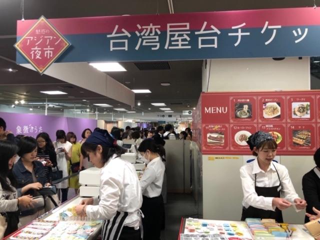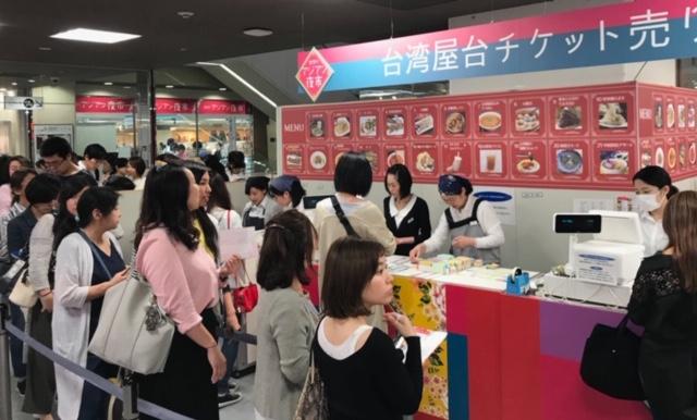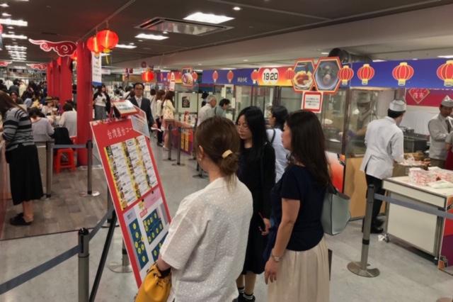 会場のブースには炒米粉(炒めビーフン)、蚵仔煎(台湾風の海鮮オムレツ)、滷肉飯(台湾風肉かけご飯)、雞排(フライドチキン)、碗糕(肉、干し大根入りのうるち米餅)、蘿蔔糕(大根餅)、肉粽(中華ちまき)、小籠包、珍珠奶茶(タピオカミルクティー)などの台湾グルメが並び、多くの日本の人々が訪れ、ご当地の味に舌鼓を打った。この中で 岡田課長は今回のイベントは同百貨店で初めて開催されたと述べ、台湾グルメのブースは最も人気があり、連日予想を超える長蛇の列が出来ており、今後も開催したいとの考えを示した。