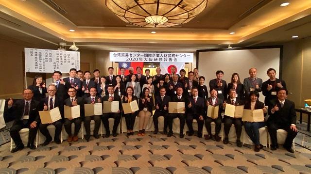 台湾貿易センター企業国際人材研修センター は2月20日晚にハイアットリージェンシー大阪にて企業研修の修了式典を行った。張永賢・駐大阪弁事処副処長、林明秋経済部部長らが駆けつけその努力と修了を祝い、同時に受け入れ企業の尽力に謝意をおくった。