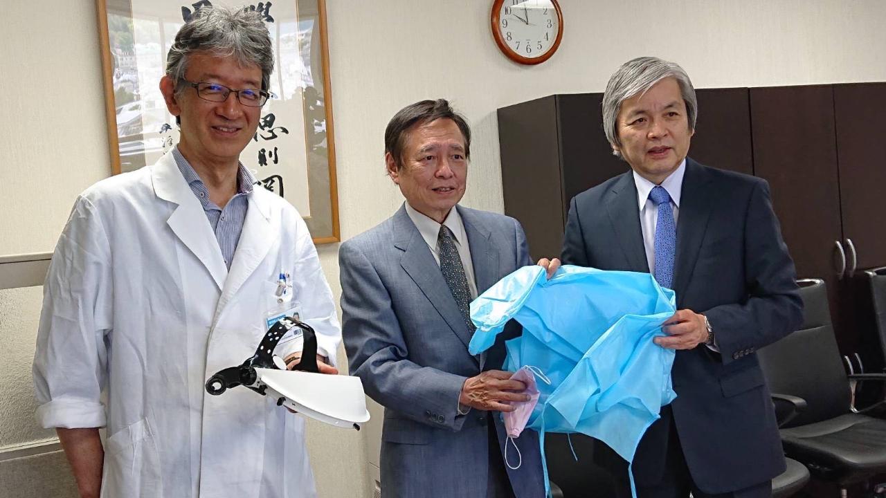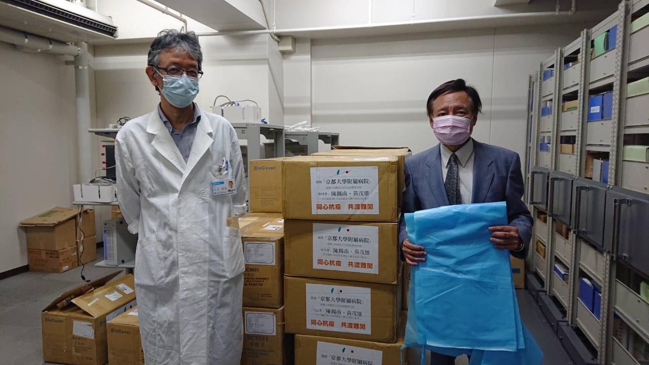 王輝生医師は515日、財団法人宜蘭人文基金会及び高雄市医師公会の代表として、財団法人宜蘭人文基金会陳錫南会長及び黃茂雄氏に代わり手術衣480着及び医療用手袋4万組を、また賴聰宏・高雄市医師公会理事長は手術衣520着を京都大学付属病院へ寄贈し、宮本享院長、万代昌紀教授が代表して受理した。李世丙・駐大阪弁事処処長が寄贈に立ち合った。