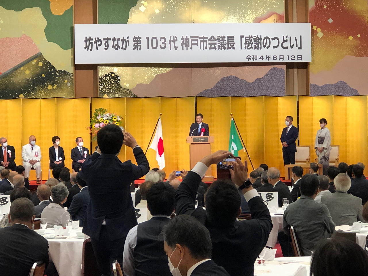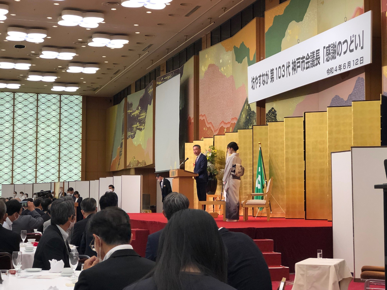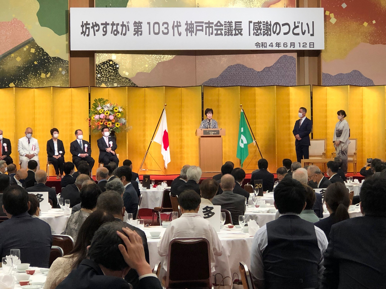 向明徳・駐大阪弁事処長は林明秋・部長、楊慧萍・課長、林育柔・課長および李碧娟・課長とともに6月12日、坊やすなが 神戸市会議長「感謝の集い」に出席した。