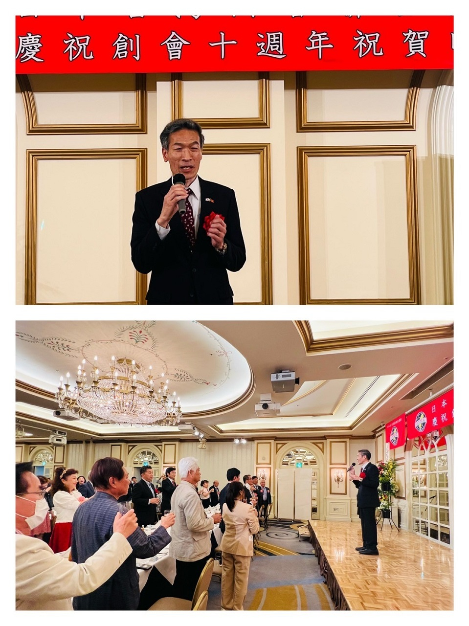「日本台湾商会連合総会」は6月17日、10週年晩餐会を開催し、向明徳・駐大阪弁事処長は楊慧萍・僑務課長及び林育柔・教育課長らとともに出席した。向処長は乾杯の音頭を取り挨拶の中で、昨年、日総は台湾の農民を支持するという政府の方針に応え、多くのパイナップルを購入したと述べ、昨年日本に輸出されたパイナップルの数は前年の8.3倍であった。また、台日友好関係を促進するために、近日、台湾バナナを地元の議員や社会福祉団体に寄付してくれた俞秀霞・総会長に感謝の意を表した。晩餐会の出席者は駐日代表処の李世丙・公使、川島隆二・滋賀県議会議員、日総理監事、会員と家族ら約150名で賑やかで盛会となった。
