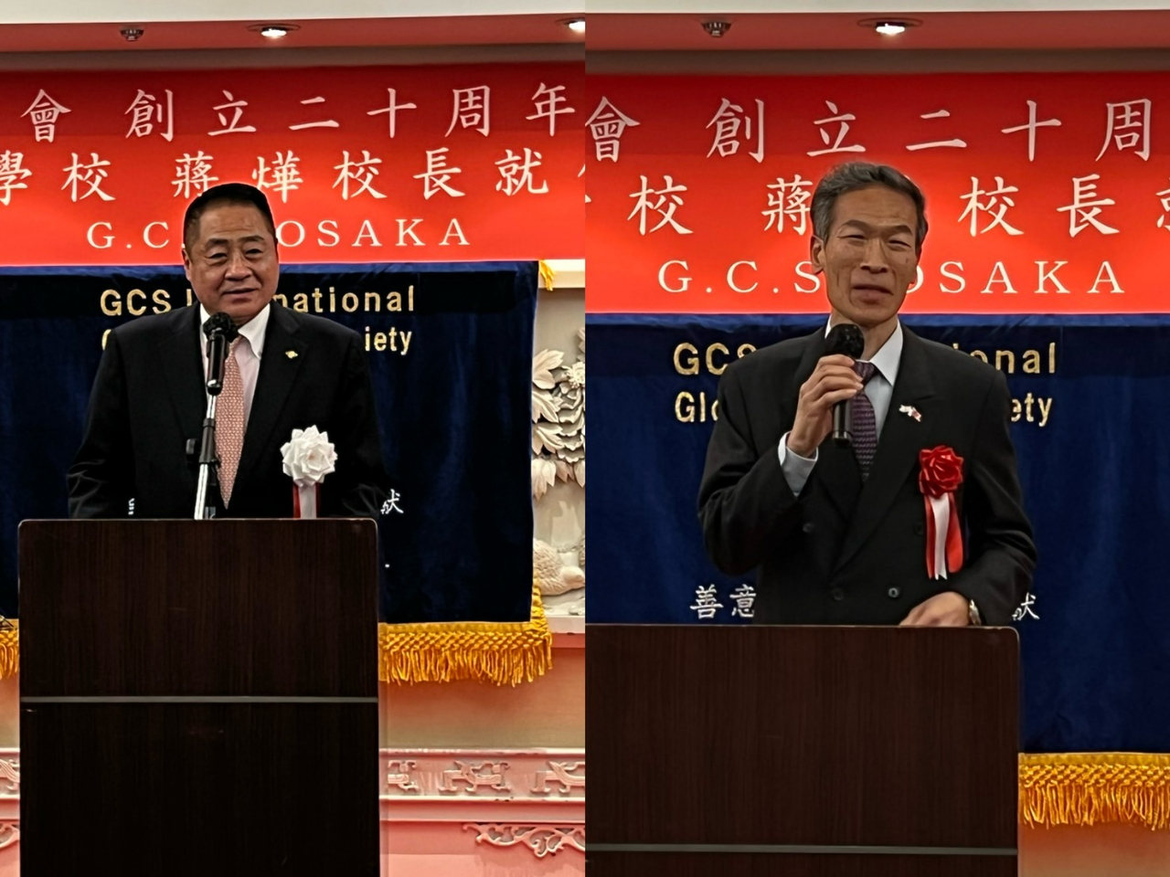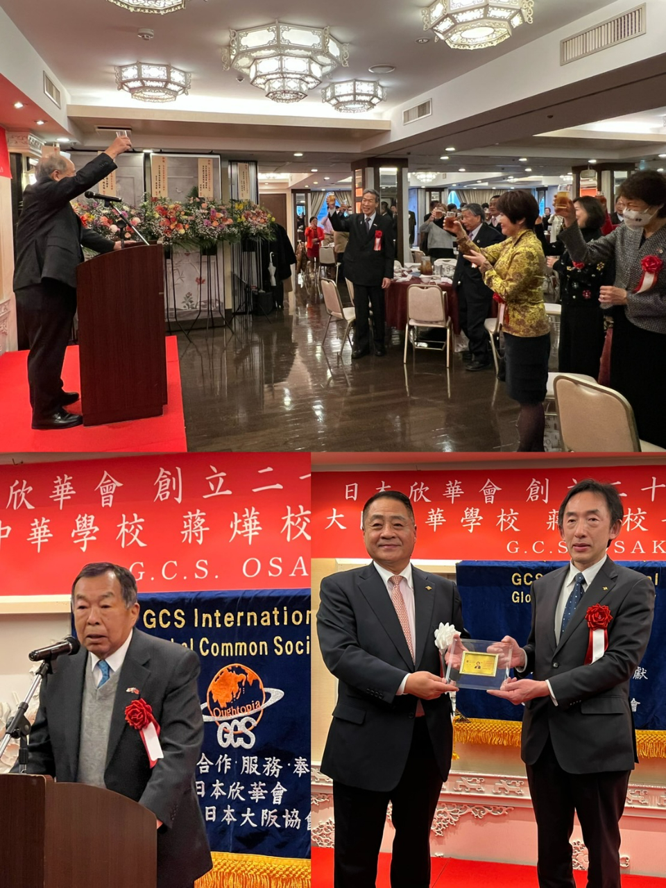 李忠儒・会長主催による日本欣華会創立20周年記念および大阪中華学校の蔣燁・校長就任祝賀会が2月19日行われ、向明德・駐大阪弁事処長は楊慧萍・課長とともに出席した。東徹・参議院議員、大阪府日華友好交流協会の川合通夫・会長、大阪市議会日台友好議員連盟の辻淳子・会長、郭重信・大阪中華総会会長、洪里勝信・大阪中華総会名誉会長、俞秀霞・僑務委員および華僑ら約100名が出席した。 李忠儒・会長は挨拶の中で、日本欣華会は生徒や保護者同士がつながりを深められるように、2003年に大阪中華学校のOBや保護者・理事会・教職員らによって設立されたことを説明し、今後も引き続き互いの親睦を深めていきたい、と述べた。 向処長は挨拶の中で、日本欣華会は長きにわたり大阪中華学校の運営や学校行事を支援し、卒業生や保護者の団結力を高めることにつながっていると評価、大阪中華学校が一刻も早く高等部を設置し、学校のさらなる発展に期待を込めた。 祝賀会では、郭会長らが来賓挨拶、洪里名誉会長が乾杯挨拶を行い、俞僑務委員が閉会挨拶を行った。また、李会長が代表し蔣燁副会長へ賀状を贈呈した。祝賀会では、魏麗玲先生による二胡のパフォーマンスが披露されたほか、元宝を模った水餃子を食べ、一元入りの水餃子を食べた方には賞金と商品券が贈られた。祝賀会は盛大に行われ、和やかな雰囲気であった。