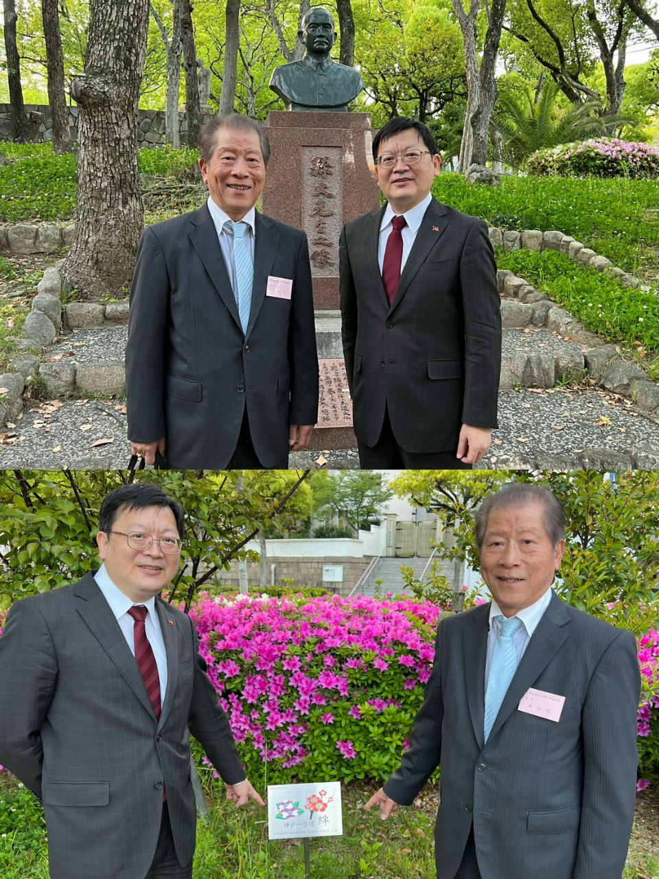 洪英傑・駐大阪弁事処長は4月28日、楊慧萍・課長とともに神戸華僑総会を訪問し、高四代・会長や副会長・理監事幹部らと交流を行った。また、高会長による誘導のもと、大倉山公園内にある国父孫文の銅像や、該会が2014年に日華親善神戸市会議員連盟と記念してこの銅像付近に植えた樹木、「絆」の文字が刻まれた記念碑を参観した後、歓迎会に出席した。 洪処長は、第43回会長に就任した高会長に祝福の意を表し、高会長のリーダーシップの下、総会がコロナ前の活動を再開することに期待を寄せた。また、神戸華僑総会が100年の歴史がある会館を守り抜き、長きにわたり台湾政府の各政策推進に協力をいただいていることに感謝の意を示したほか、僑務委員会の「i僑カード」について紹介し、申し込みを呼びかけた。その後、総会の幹部らが自己紹介を行い、円満で順調な交流となった。