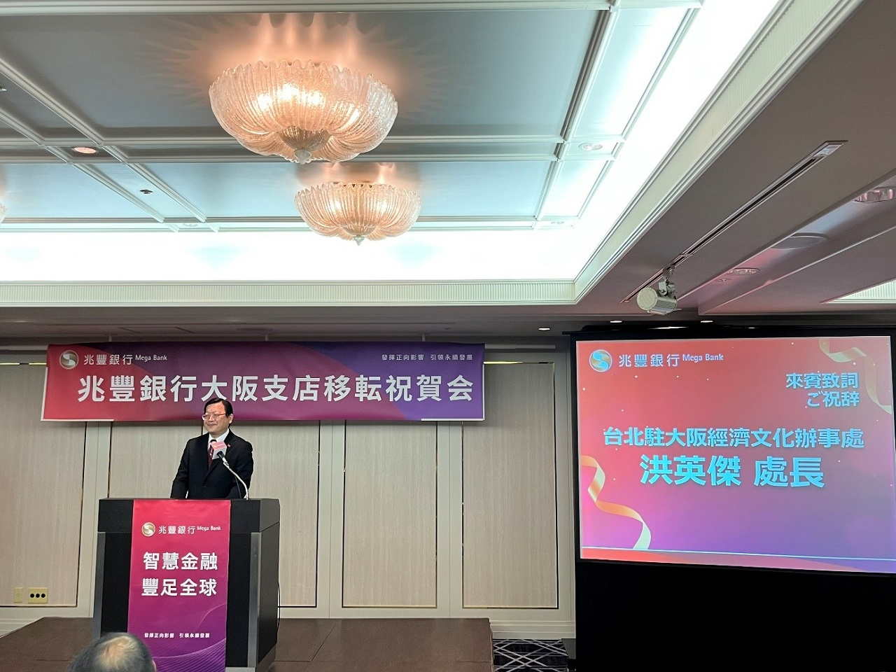 洪英傑・駐大阪弁事処長は6月19日、職員らとともに「兆豊銀行大阪支店移転祝賀会」に出席し、兆豊銀行の胡光華・代表取締役、大阪中華総会の洪里勝信・名誉会長、日本関西台商協会の楊立寧・会長および台日のビジネス界や華僑界の関係者ら合わせて60名が出席し、盛大な会合となった。 洪処長は挨拶に際し、兆豊銀行は台湾系銀行で唯一大阪に拠点を開設し、国内外企業の発展をサポートする、台日間の経済産業を支えるための金融資源の重役を担っていると示し、該行業務のますますのご発展とより多くの台湾系企業が日本各地に拠点を設立することに期待を寄せた。