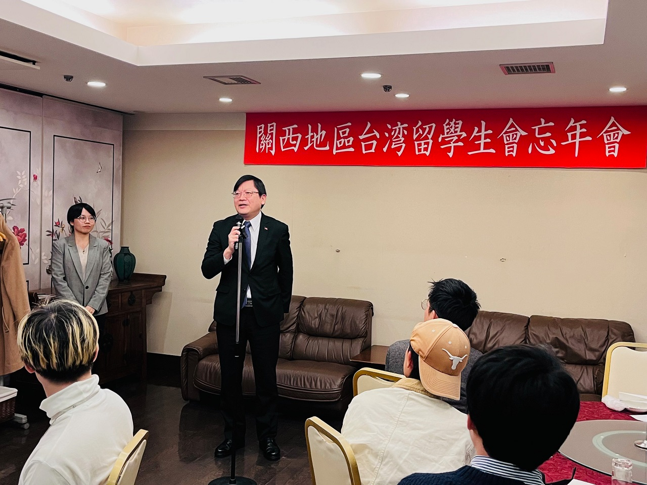 洪英傑・駐大阪弁事処長は12月3日、林育柔・文教課長とともに「関西地区台湾留学生会」主催の懇親忘年会に出席した。 洪処長は挨拶で、自身の日本留学の経験を元に、留学生らに勉学に打ち込むことと、現地の人と交流できるようなチャンスがあれば積極的に参加し、人脈を広げることを勧めた。また、留学生と今後関わりがある領事事務の内容についても紹介を行った。林課長は、学生らが留学期間中に、詐欺や危険に巻き込まれないよう呼びかけを強化した。 「関西地区台湾留学生会」の周雨臻・会長は留学生を代表して、政府と弁事処に対し感謝の意を述べたほか、大阪中華総会の洪里勝信・名誉会長が長期にわたり留学生をサポートし強力な後ろ盾となっていることで、心配事なく海外生活に適応し学業に専念できていると述べた。 洪里名誉会長は、留学中、日本の友人を多く作り、台湾と日本の架け橋となれるよう励ました。また、抽選会の景品として大阪-台北間の往復航空券を2枚提供し、忘年会は盛り上がりを見せた。 忘年懇親会には、京都大学・大阪大学・神戸大学・関西大学・関西学院大学・大阪公立大学・立命館大学・同志社大学など8大学の台湾留学生会会長および幹部ら30名が出席した。