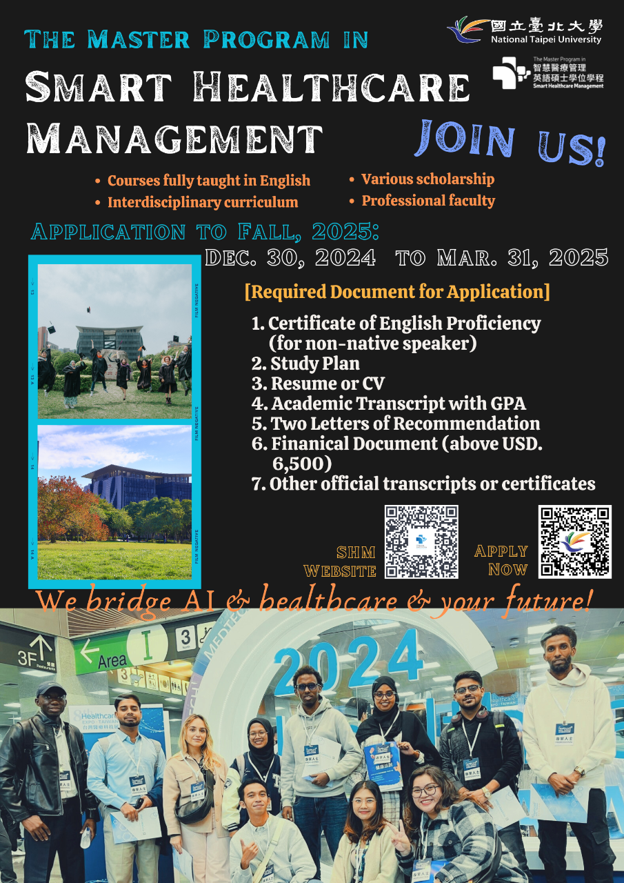 The Master Program in Smart Healthcare Management (SHM) in NTPU is now recruiting new students for Fall Semester, 2025.