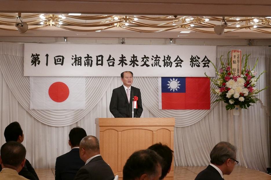 湘南日台未來交流協會(會長:添田宏高)於7月23日晚間假平塚市飯店舉行該會第一次總會及懇親會,計邀當地政財經人士包括神奈川縣議會議長森正明、縣議員赤井KAZUNORI、米村KAZUHIKO、平塚市議會前議長黑部榮三議員、佐藤貴子議員、平塚市商工會議所會頭福澤正人、日台經濟文化交流協會會長上村直子、靜岡日台友好協會會長長谷川博司及橫濱華僑總會副會長洪益芬、橫濱台灣餐飲聯誼會會長張志銘等人計60餘名出席,本處粘信士處長夫婦偕同仁亦應邀參加並申致賀詞。 總會前,主辦單位特放映本處提供之中華民國第14任總統副總統就職典禮集錦供在場賓客觀賞。總會開始,添田會長致詞表示,該協會去年6月在駐處粘處長見證下正式成立,盼扮演該市及湘南地區與我國間的民間交流橋樑。 神奈川縣議會森議長致詞指出,會中放映之蔡總統就職短片渠於5月下旬出席華濱各界舉行之祝賀茶會中已曾觀賞,再次祝賀我國新政府正式啟動,同時也期盼台日關係益加發展穩固。 福澤會頭亦致詞鼓勵該會今後協助促進該市與我各項往來及交流。 粘處長應邀致詞,(一)首先祝賀該會成立後1年有成,及前曾對我高雄氣爆事件賑災之盛情;(二)肯定添田會長等幹部平素熱情參與我日華、日台及僑會團各項活動;(三)感謝森議長等各界政要5月間專程出席我橫濱各界慶祝第14任總統副總統就職茶會;(四)蔡總統在就職演說中宣示五大施政方向,其中除將推動我國參與TPP、RCEP外,今後將推行新南向政策,將有利台日企業在第三國策略聯盟及合作;(五)蔡總統6月間應邀出席巴拿馬運河擴張峻工儀式及前往邦交國巴拉圭進行元首外交;(六)有關菲律賓與中國大陸之南海仲裁案,仲裁過程中既未邀我國參與,亦未徵詢我國意見,仲裁庭竟將我國之太平島牽扯在內並將其由島降格為礁,對此,我政府已鄭重聲明絕不接受,該項仲裁判斷對我國不具法律拘束力;(七)有關地方交流,過去2年來本處已分別在政令指定都市川崎及靜岡兩市成立超黨派議員連盟,本年5月在鎌倉市議會亦成立超黨派議連。川崎市舉辦的國際交流活動已連續2年邀請我團參加,本年我團亦順道前往平塚市參加該市的七夕節活動。轄區江之電電車3年前與我平溪線締盟以來,實施成效良好,去年7月進一步進行車箱彩繪,本年3月與台鐵締結友好鐵道協定,本年6月與高雄地鐵洽簽觀光交流協議書。 懇親會中交流熱絡,至晚間8時許圓滿結束。