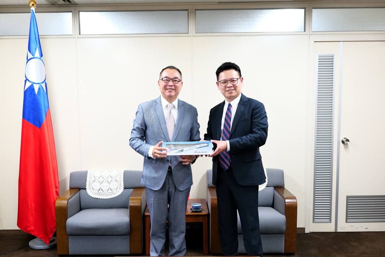 圖說:蘇岳璽處長(右)與中華航空日本支社長李宜洲(左)合影留念。