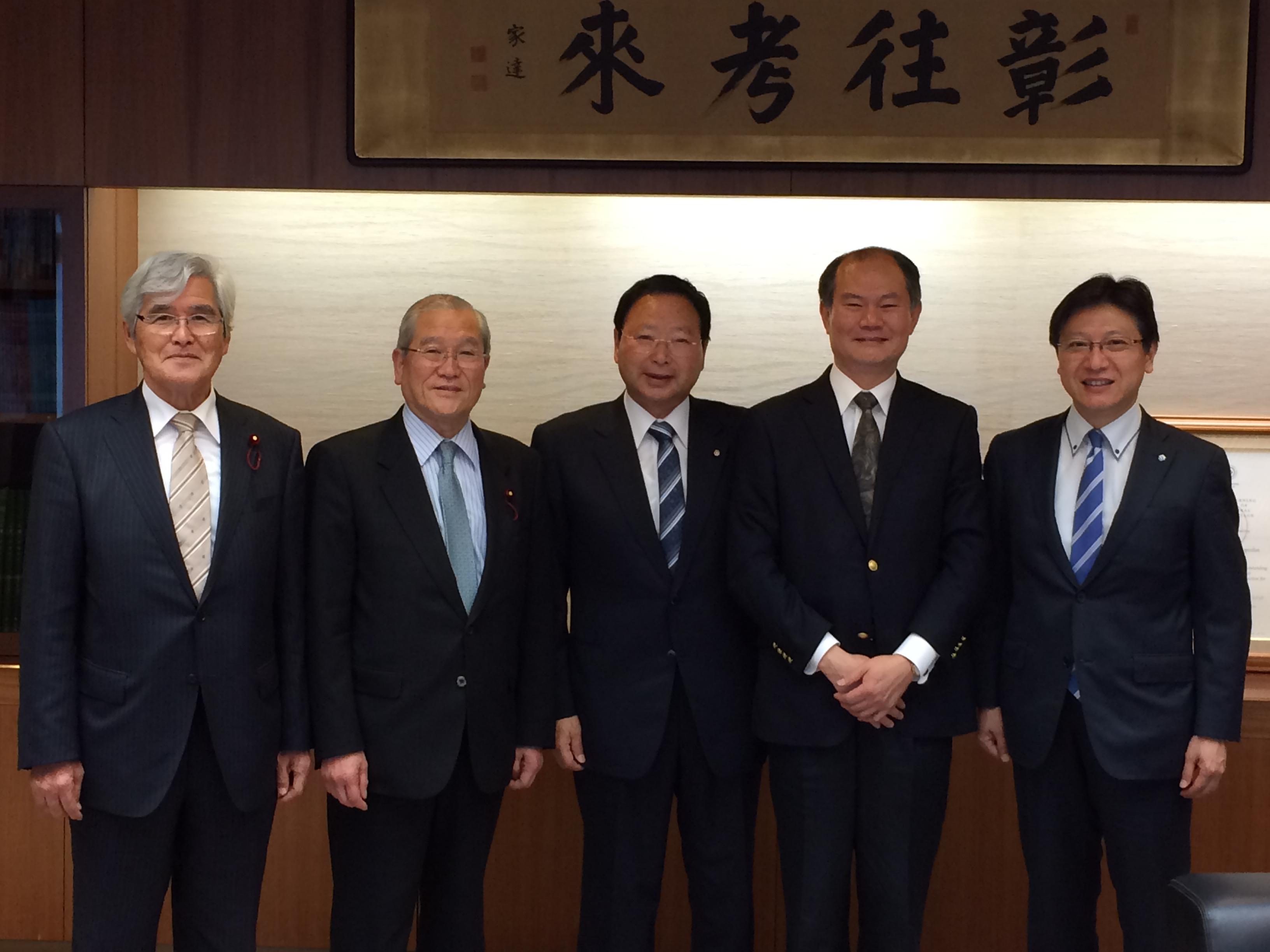 駐處粘處長與田邊市長及議連幹部合影。