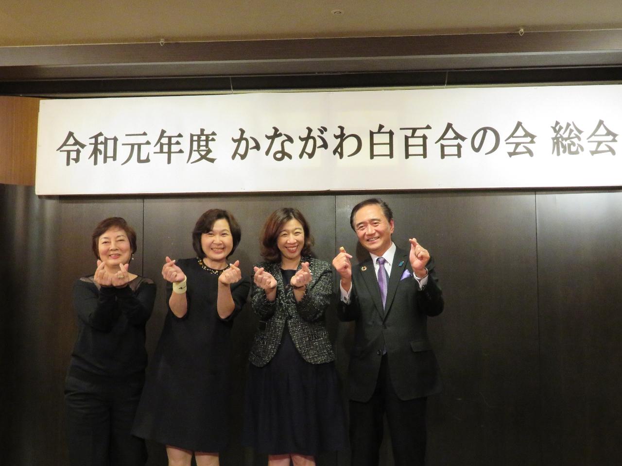 本處張處長淑玲於本(11)月6日應邀出席由神奈川縣女性議員組成之「白百合之會」年度總會,立法院外委會林委員靜儀適逢當日在橫濱參加會議,會後與張處長邀請以特別嘉賓身分一同與會出席。神奈川縣知事黑岩祐治、神奈川縣議會議長梅澤裕之、神奈川縣議員超黨派女性議員及縣政府幹部共約70名出席總會。 張處長以貴賓身分致詞並籲請與會人士支持我國加入UNFCCC及INTERPOL等國際組織。林委員亦以貴賓身分致詞表示,我國女性立法委員與其他國家相比之下為高,民進黨尤致力推動女性參政。此次首次在日參加由女性議員組成之懇親會,倍感親切愉悅。會場尚有兒童合唱團表演,場面溫馨。