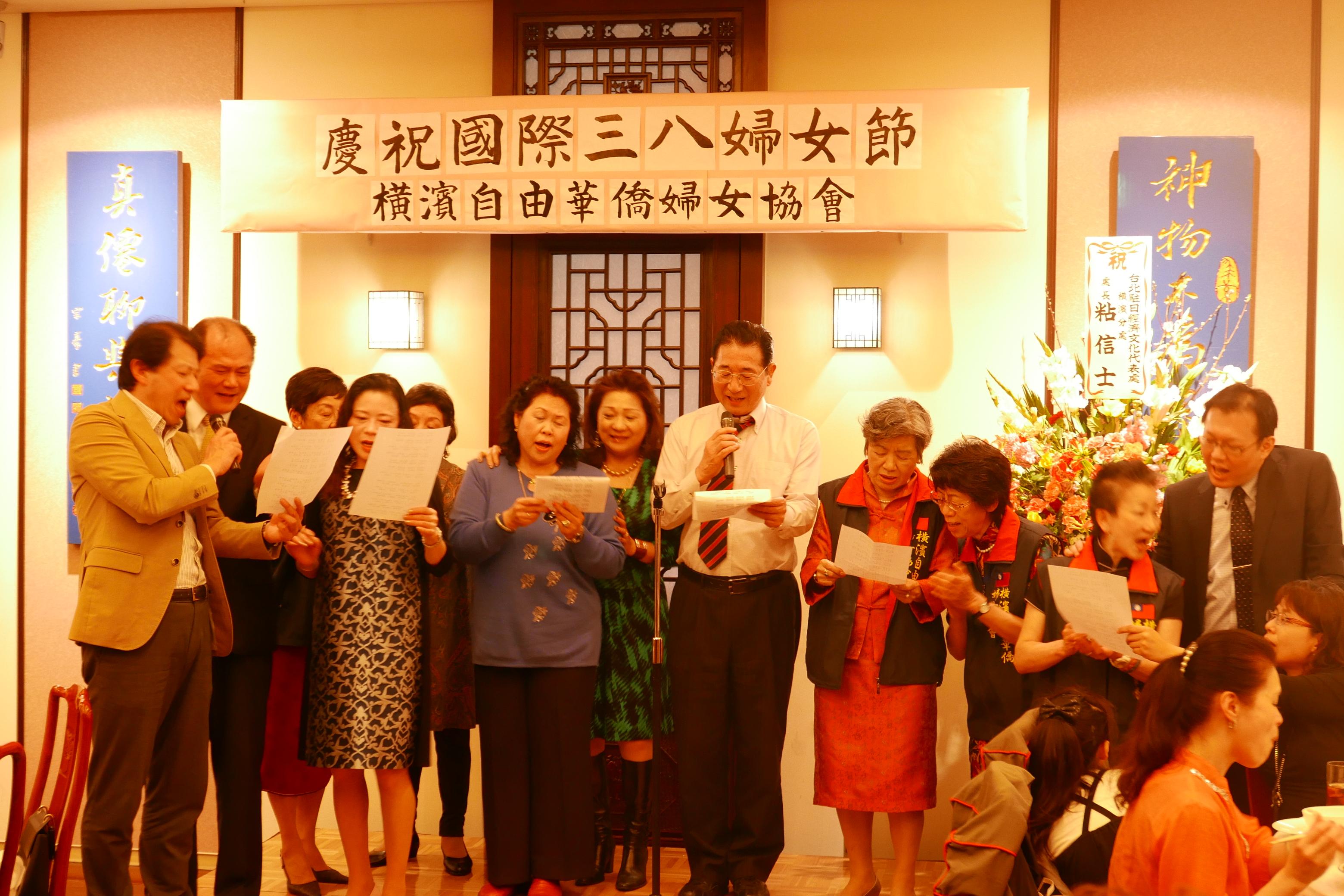橫濱自由華僑婦女協會為慶祝國際婦女節,於3月8日晚間假中華街熱烈舉辦慶祝餐會活動,席開七桌,除當地僑界婦女與會外,亦邀請千葉縣、東京都婦女代表共同參加,駐處粘總領事夫婦偕同仁應邀出席。
