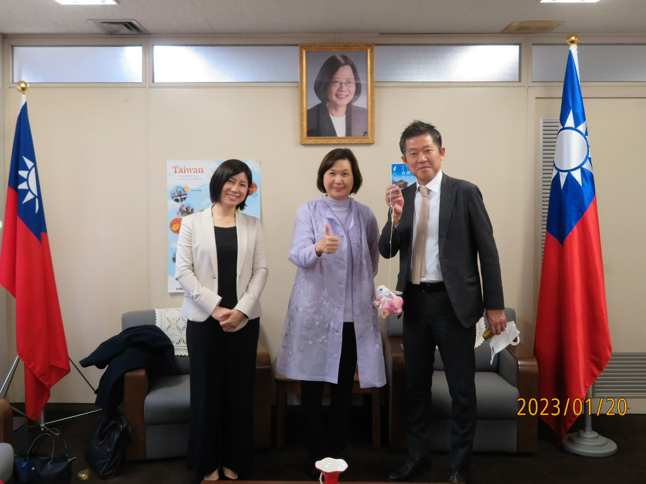 張処長は1月20日、熊本朝日放送東京支社澤田伸一朗社長及び営業部舩津真弓部長の訪問を受け、台湾積体電路製造(TSMC)の熊本新工場をはじめ、台湾と日本とのビジネス交流について幅広く意見交換した。