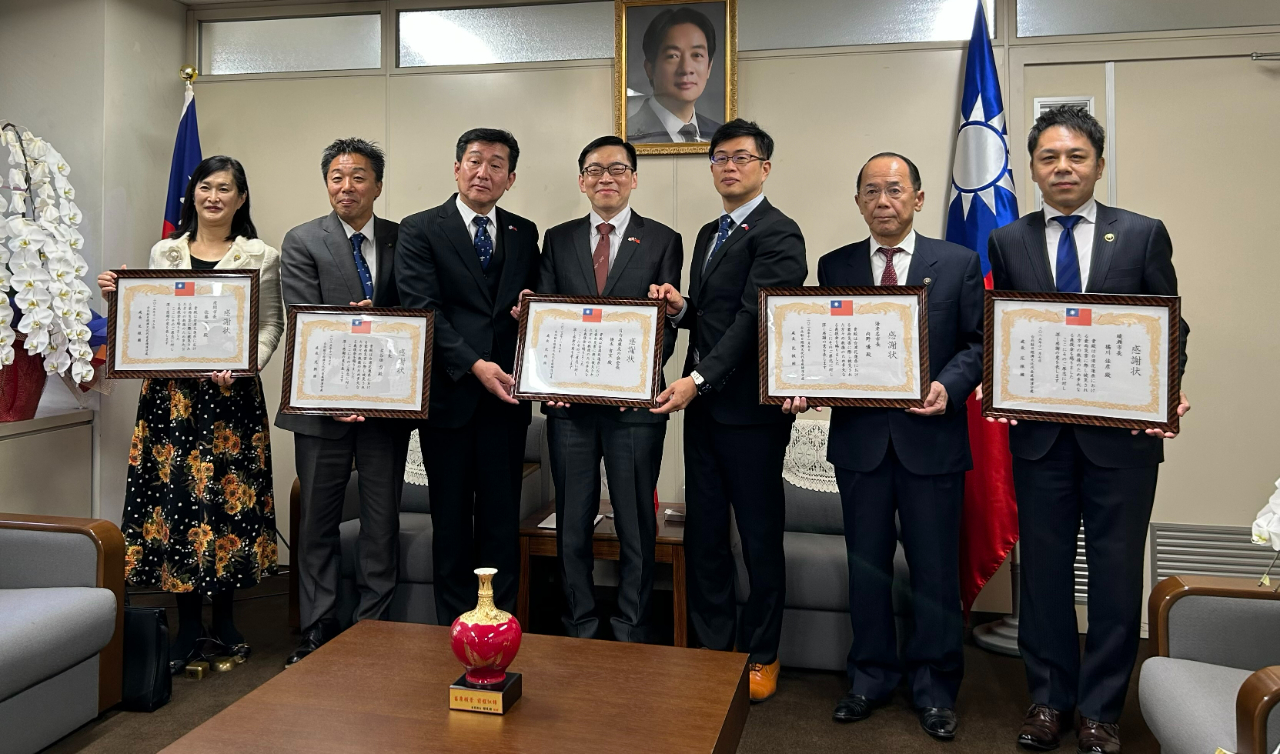 范処長は11月7日、神奈川県大和市の古谷田力市長、海老名市の内野優市長、座間市の佐藤弥斗市長、綾瀬市の橘川佳彦市長、日台高座友の会の橋本吉宣会長及び伊澤健志朗事務局長と面会し、4市長と橋本会長から花蓮の豪雨被害に対する義援金を受け取った。 范処長は感謝状を贈呈し、4市が連携して募金活動を行い、台湾の被災地復興支援にご協力いただいたことに感謝の意を表した。また、お預かりした義援金はすぐに台湾政府が指定した災害支援専用口座に送金されることを説明し、各市長と台湾と日本の歴史的なきずな、地方交流、防災協力などについて意見交換をした。