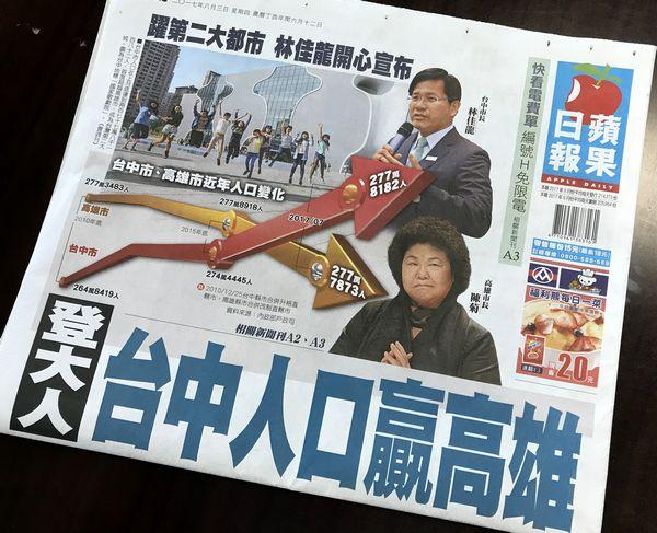 台中市の林佳龍市長は2日、台中市が高雄市を309人上回り、台湾第二の都市になったと宣言。同時に、台中市の人口増加にはそれなりの原因があり、台中市民が出産した場合1万元、出産後のケアに最大2万元、2歳から6歳までの幼児に幼稚園就学費用として年間3万元を支給するなど、手厚い福利厚生や社会保障が台中市への人口移入を促進しているなどと話した。