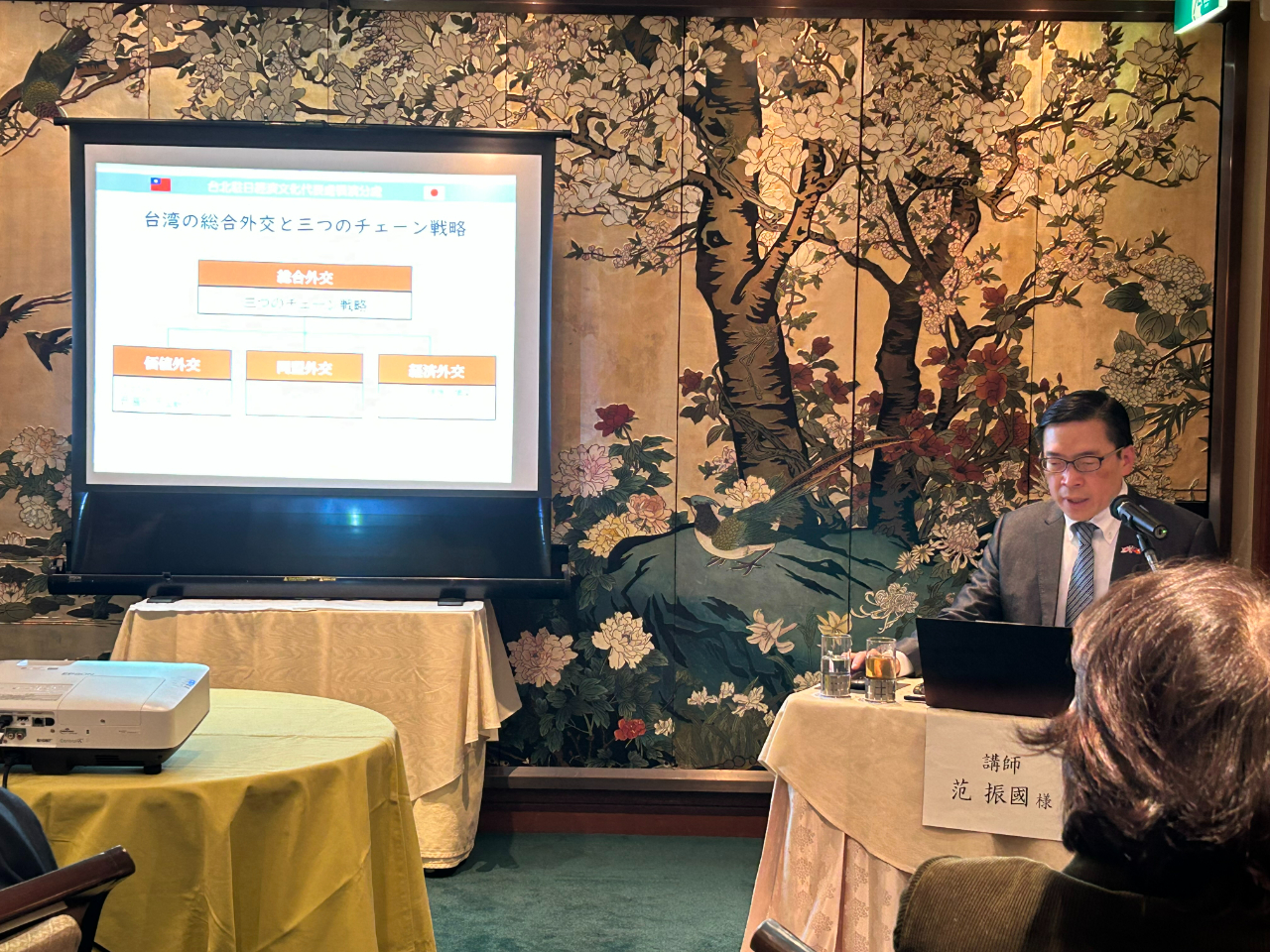 范処長は11月27日、日華親善横浜市会議員連盟研修会で、台湾の外交現状と台日関係について講演を行った。講演では、台湾が日本の水産品を支援する姿勢を紹介し、出席された議員の皆様に対して、今後も台湾の国際機関への参加やCPTPP加盟への支持を継続していただくようお願いした。