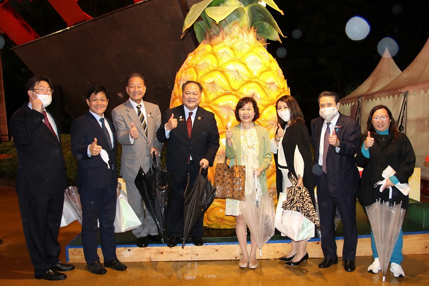 当日一日限定で東京タワーはパイナップル色にライトアップされた。
