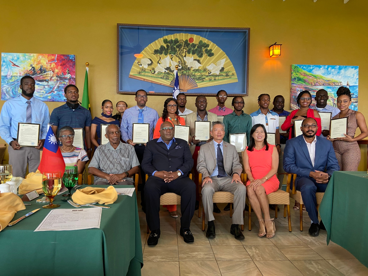 本館李大使志強夫婦於9月30日主持2020年外交部「台灣獎學金」及「國合會獎學金」受獎生頒贈儀式,克國總理哈里斯(Timothy Harris)、教育部長包威爾(Jonel Powell)、克國教育部及外交部官員與館團同仁等50餘人參加。 李大使首先致詞表示,克國為我堅實友邦,我樂願協助克國培育更多人才;本館將安排克國學生迅速成行,勉勵克國學生珍惜在台學習機會,未來學成返國為克國國家發展作出貢獻。 包威爾教長繼致詞感謝我政府慷慨提供獎學金嘉惠克國學子,為克國培育人才,並恭賀克國學子,期盼受獎生充分利用在台研習機會。 哈里斯總理致詞表示,感謝我政府持續不斷提供獎學金,協助克國培育人才,克國政府非常感謝,未來將持續與我合作,深化雙邊關係,裨益兩國人民。