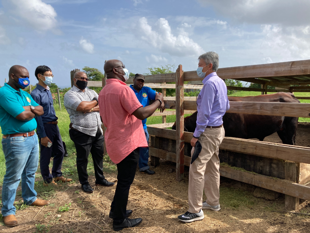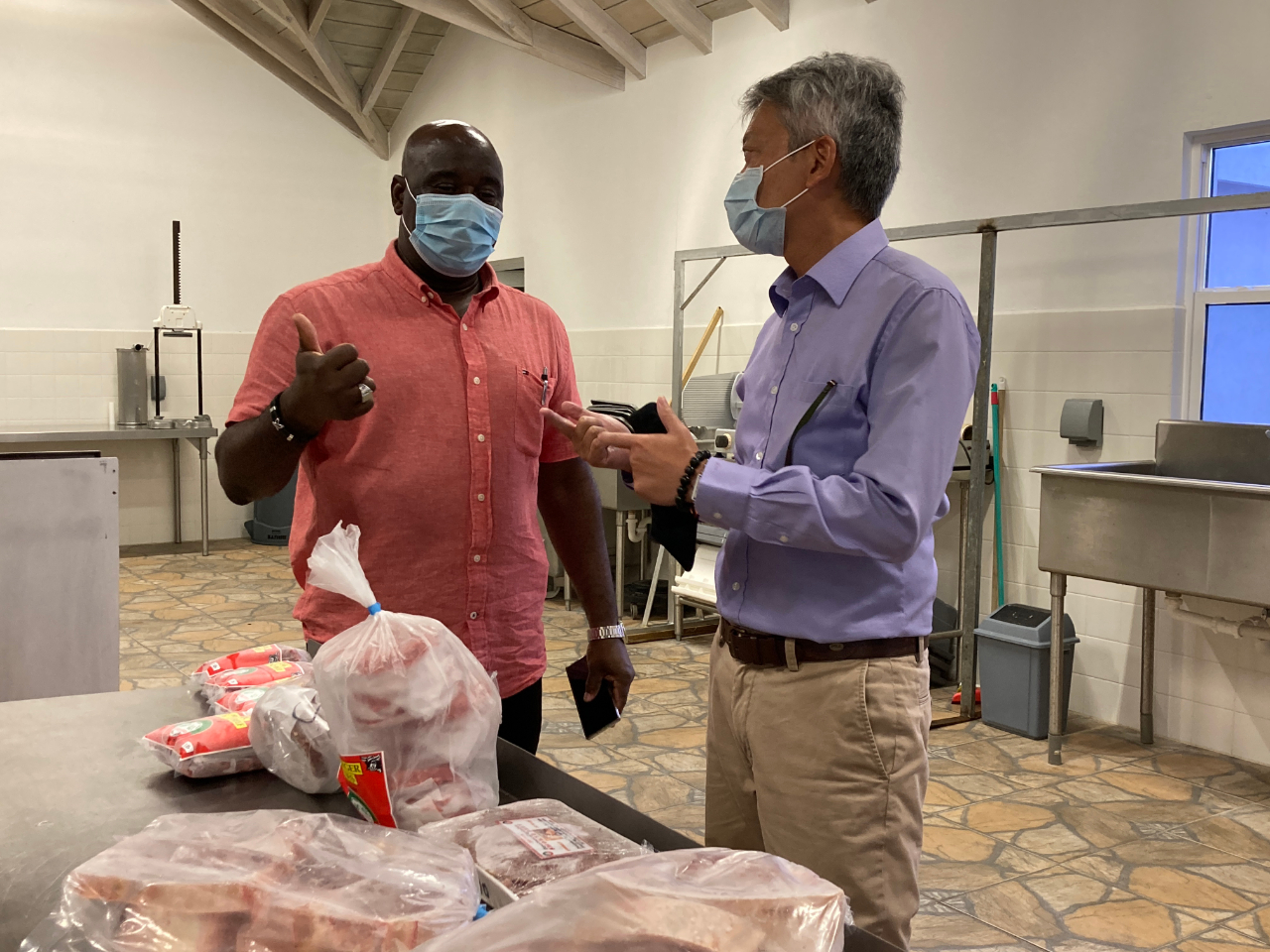 本館李大使於10月30日受尼維斯島副行政首長兼克國農業部長傑佛士之邀,實地參訪示範牧場、肉品處理廠及農產品加工中心。尼島生產的優質肉品自給自足,是糧食安全的最佳典範。台灣和克國將在永續農業的領域持續相互學習及合作,實現聯合國永續發展目標。