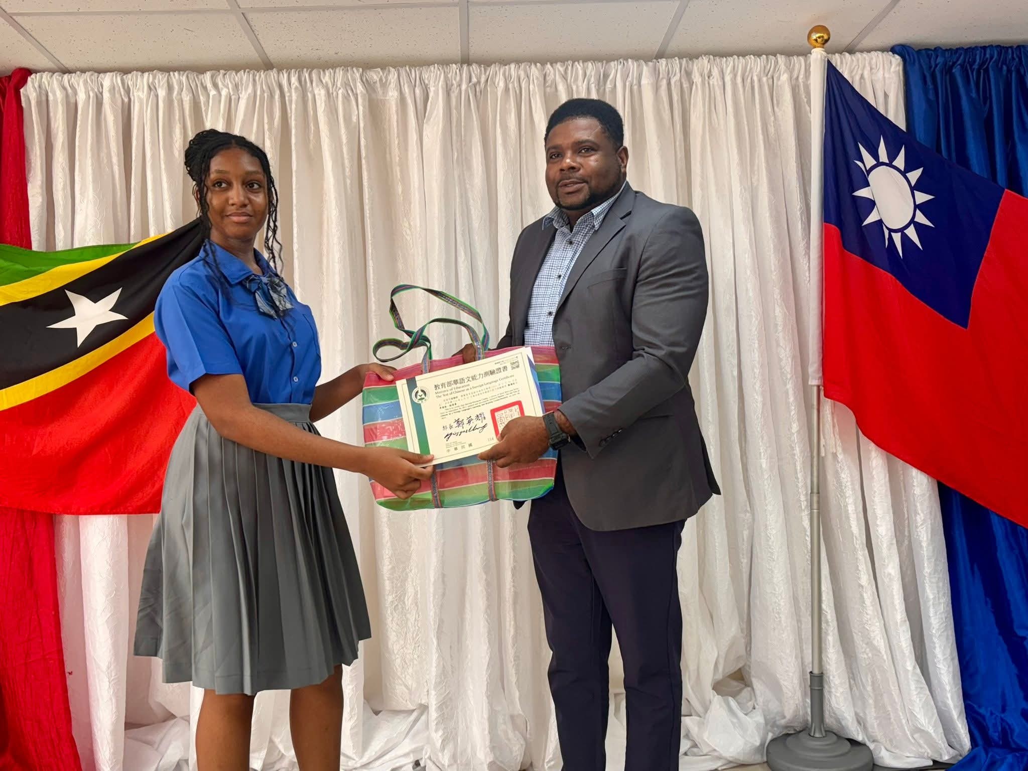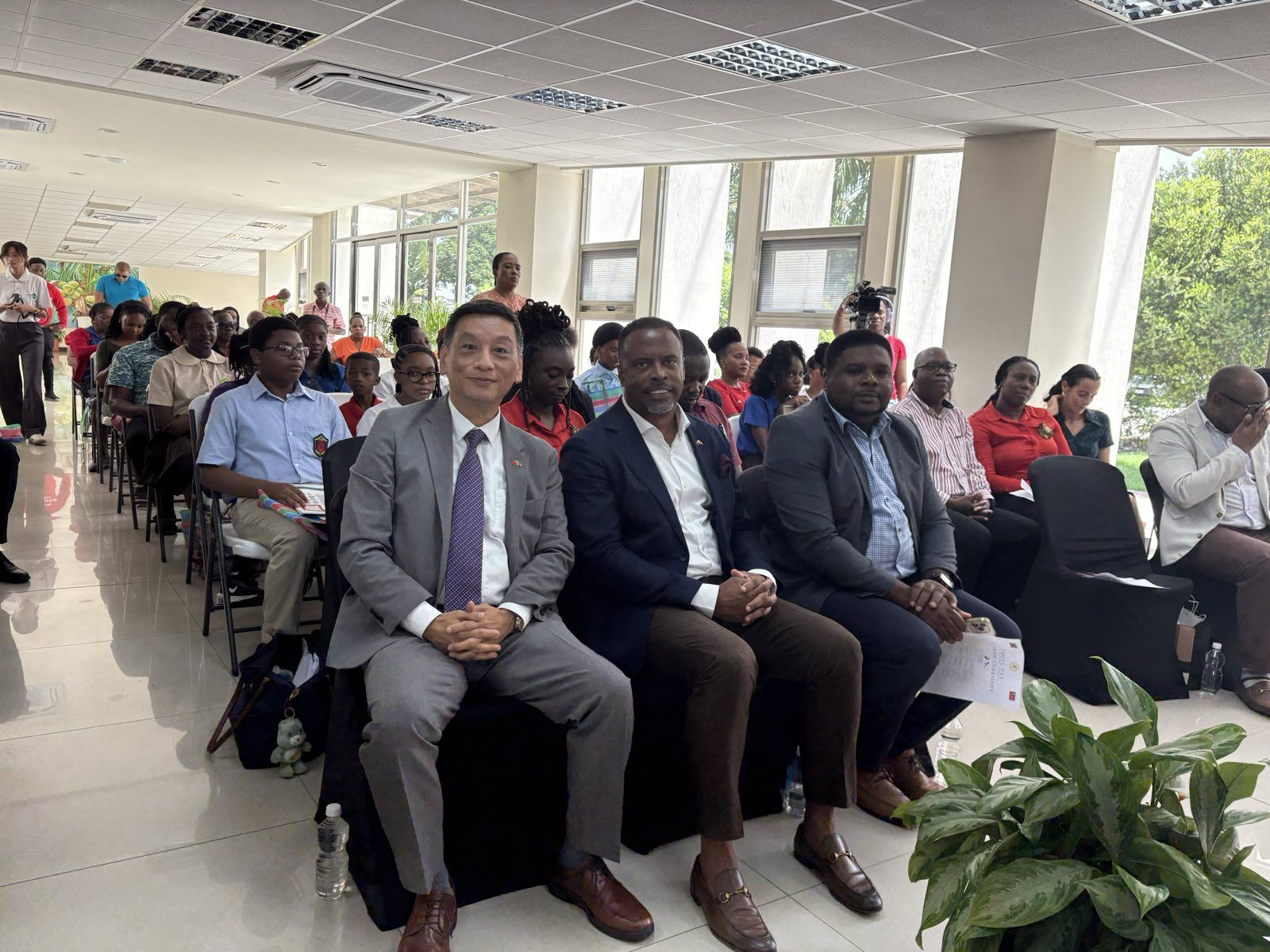尼島行政機構於9月5日舉行「華語文能力測驗(TOCFL)」證書頒獎典禮,表彰順利通過測驗的學生。本館陶令文大使伉儷、尼島行政首長Mark Brantley及教育部長Troy Liburd均應邀出席,並頒發證書予學生。